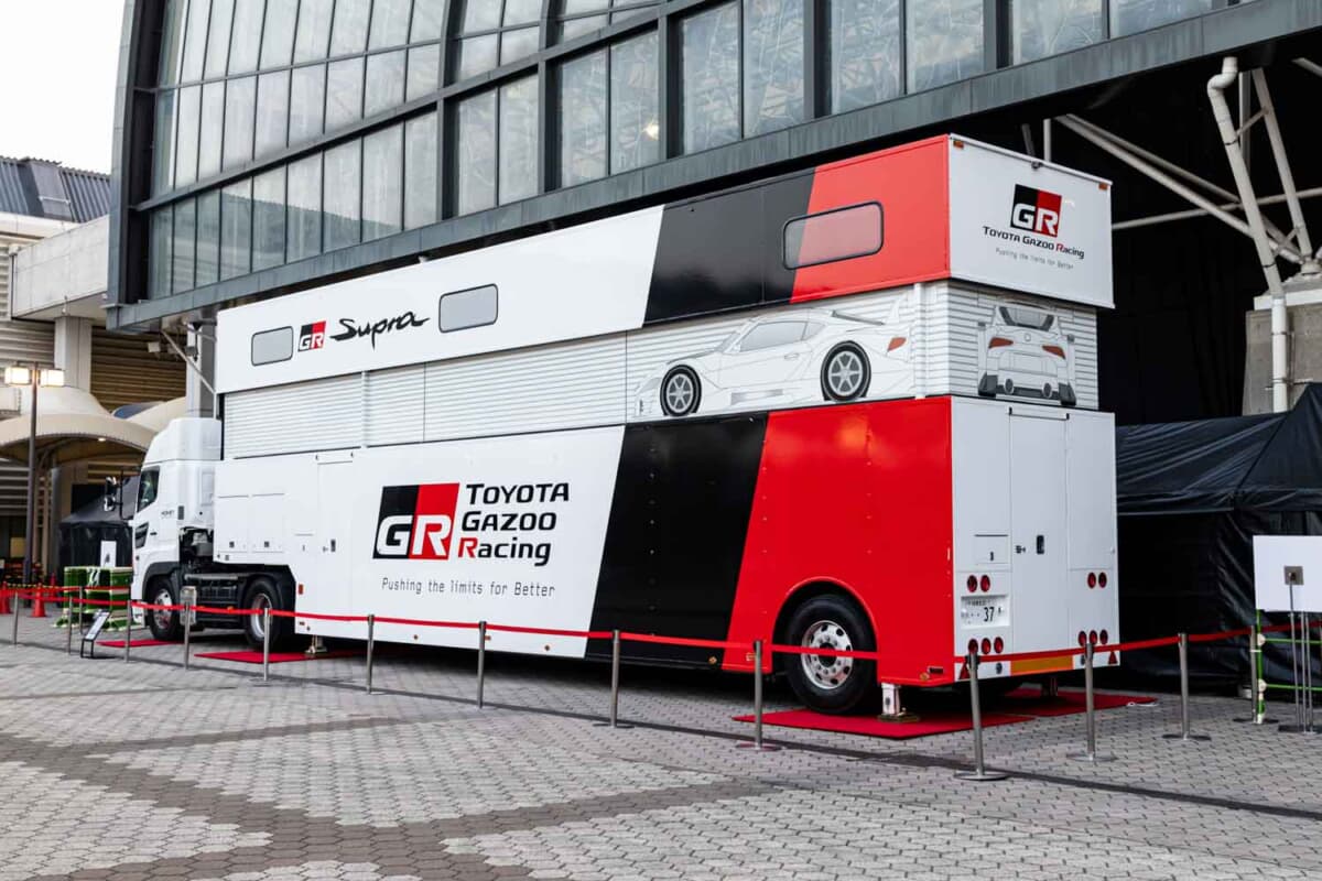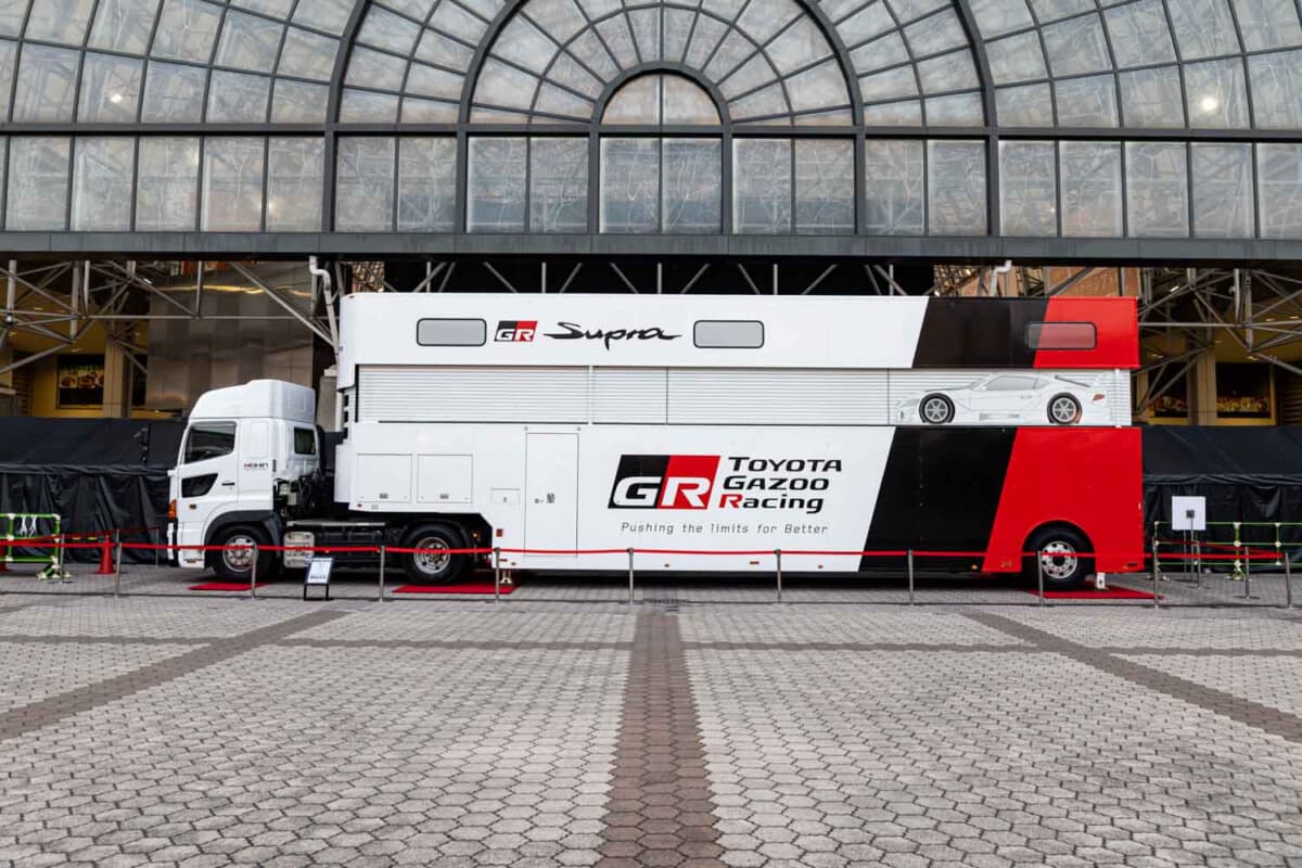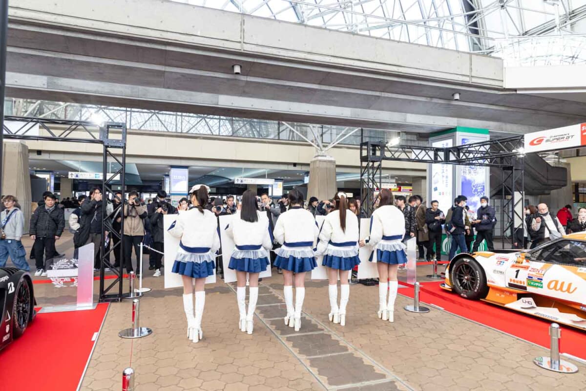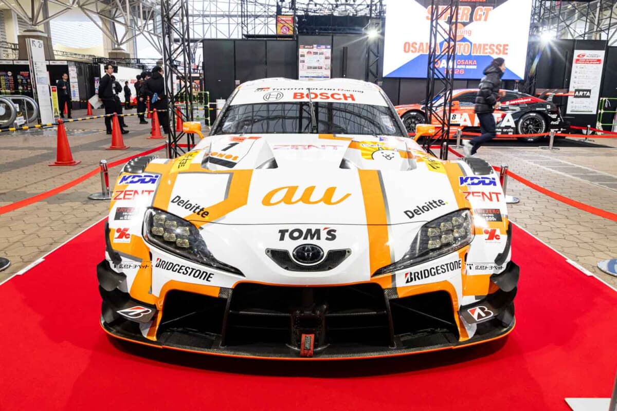 見どころがたくさんあって目移りするが、まずは注目したいのは、インテックス大阪の西ゲートから入場してすぐのインテックスプラザに3台の展示車両がある。2026年、ここで来場者を出迎えてくれるのは、2025シリーズGT500/GT300クラスのチャンピオンマシン「#1 au TOM’S GR Supra」と「#65 LEON PYRAMID AMG」だ。そしてホンダ陣営からは、「#8 ARTA MUGEN CIVIC TYPE R-GT」が登場した。