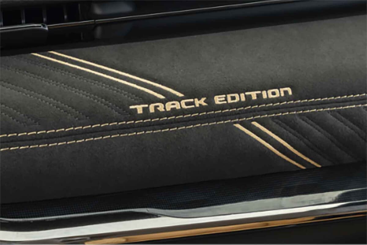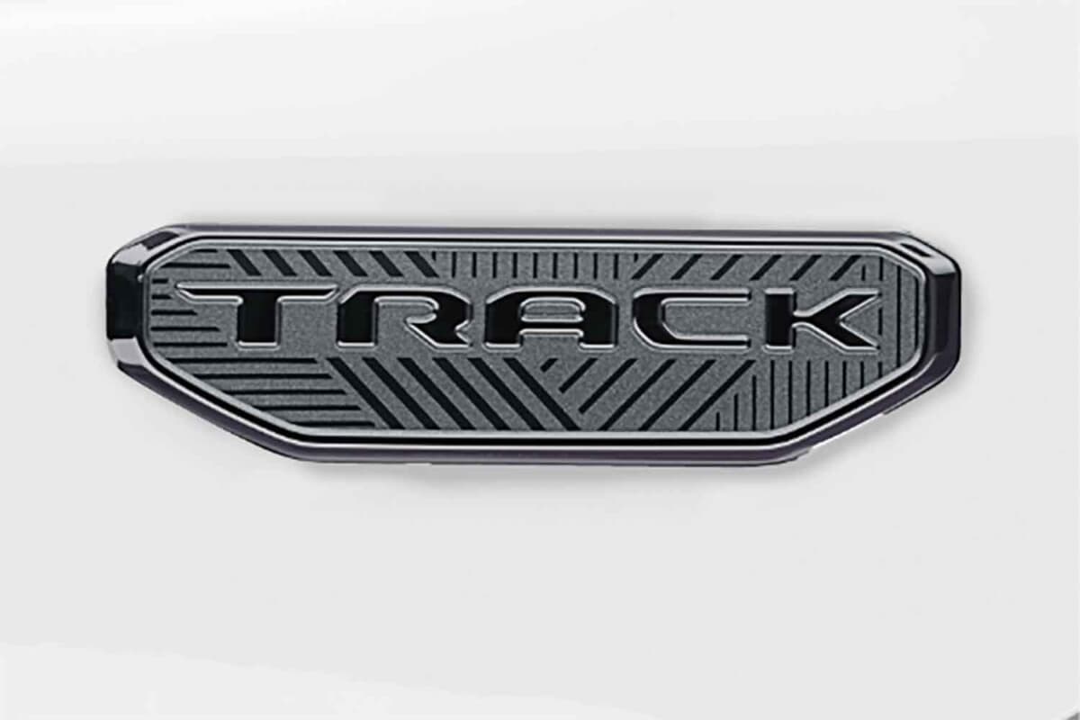 Track Edition共通の特長は、エクステリアではボディ同色のフロントフェイシア、ホイールフレア、シルモールディングの採用だ。前後バンパー下部やサイド下部にはグレークリアコートアクセントを施し、ダークトーンを基調とした落ち着きのあるスタイリングになっている。また、ジープロゴバッジや4×4バッジなどは従来のクローム仕上げからグロスブラックに変更され、専用の「TRACK」バッジも限定車であることを主張する。