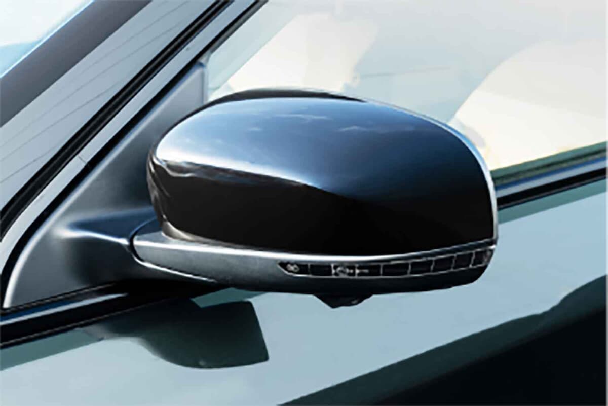 グロスブラックの外装アクセントと上質の革シートの室内仕様