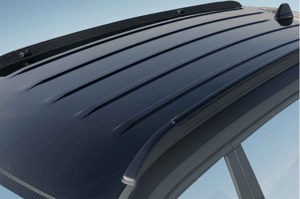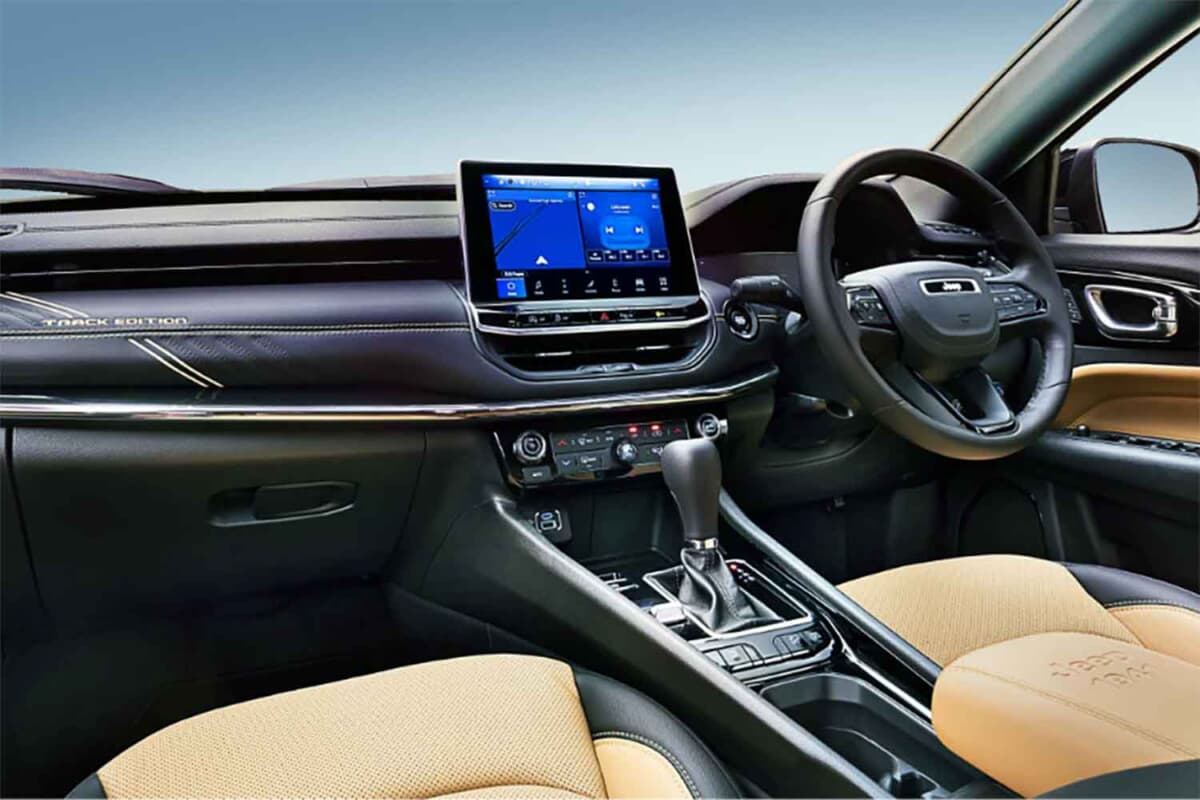 モデル別装備ではCompass Track Editionにブラックペイントルーフを特別装備とし、ボディカラーのパールホワイトトライコートとの組み合わせで、引き締まった印象を強調。ドアミラーやウインドウモールディング、ルーフレールにもグロスブラックのアクセントを与え、統一感ある外観に仕上げた。足もとにはライトグレーアクセントを施した18インチアルミホイールを装着。機能面ではフロントシートにベンチレーション機能を搭載し、季節を問わず快適なドライビング環境を提供する。