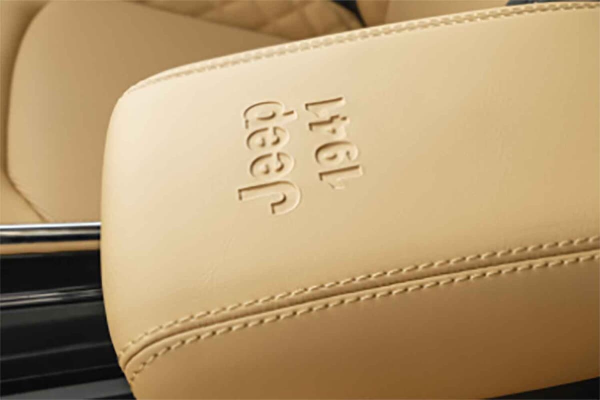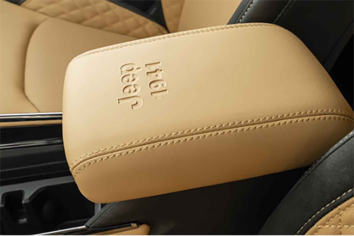 インテリアは専用色となるテュペロブラウンとブラックのコントラストが特徴。合成皮革シートはこの専用配色で仕立てられ、シートやインストルメントボルスターには「TRACK EDITION」の刺繍ロゴを施す。またジープ誕生の年である「1941」のロゴを刻んだスライディングアームレスト付きセンターコンソールを装備し、ブランドの歴史を感じさせるディテールを採用。