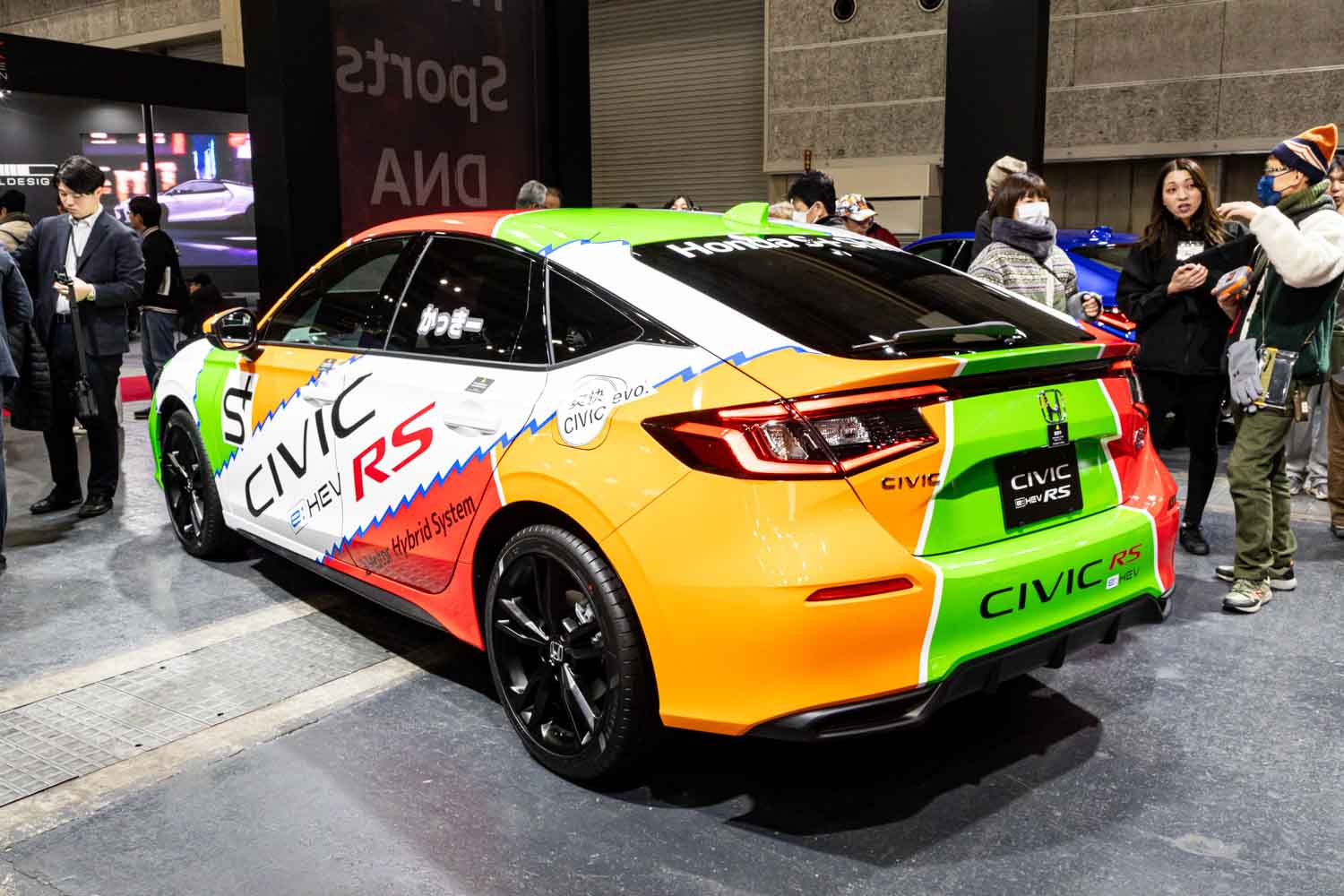 大阪環状線をホームとする「環状族」には、EF9やEG6といった歴代シビックが大人気だった。派手なカラーリングがよく似合い、グループAレプリカのカラーもお馴染みだ。漫画『大阪MADファミリー』にもジャックスカラーのシビックが登場しているので、グループA時代を知らない世代でも、このシビック e:HEV RSプロトタイプにはそそられるのではないだろうか。
