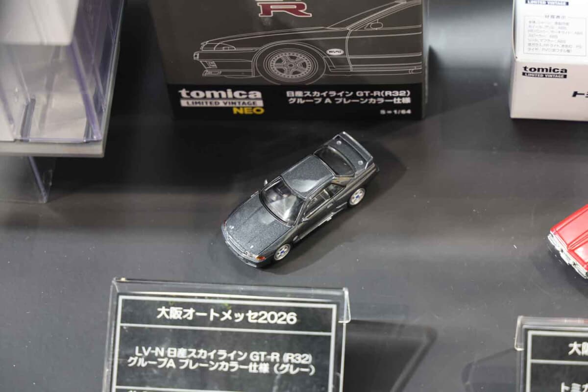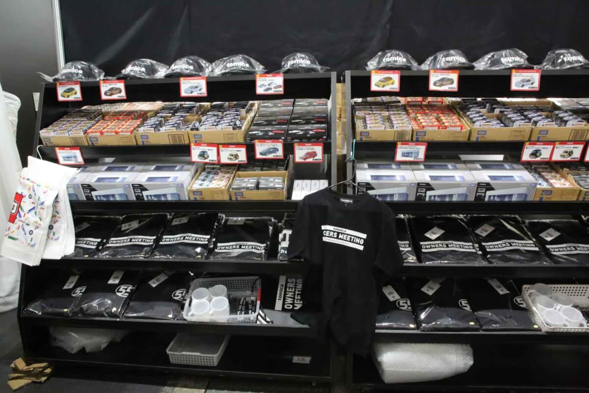 物販ブースでは「イベントオリジナルトミカ」として、東京オートサロンでも販売されたゴールドのGRカローラに加え、ネッツ兵庫 BS GR86(トヨタGR86)が登場。「イベントオリジナルトミカプレミアム」としては、NISMO R34GT-R Z-tune ProtoとGT-R 4MODELS Collection(KPGC10、BNR32、BNR34、R35)がラインアップされました。