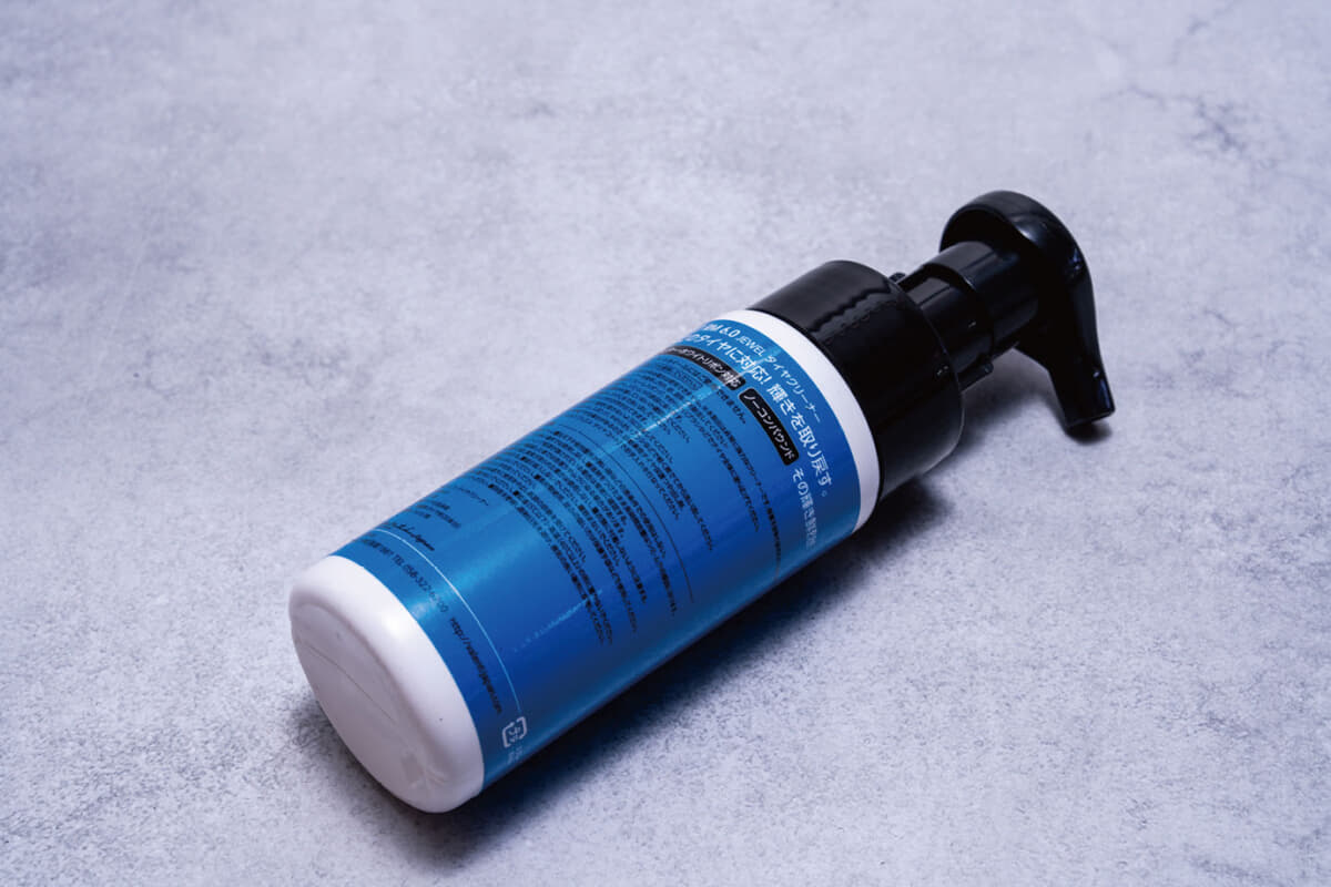 タイヤの汚れを水で落とした後、濡れた表面にタイヤクリーナー適量をスプレーして布やスポンジでタイヤ全体に塗り広げる。5〜10分放置する と汚れが浮き出てくるので水で洗い流せばいい。その後、艶を出すためにタイヤコートで手入れしてやりたい。
