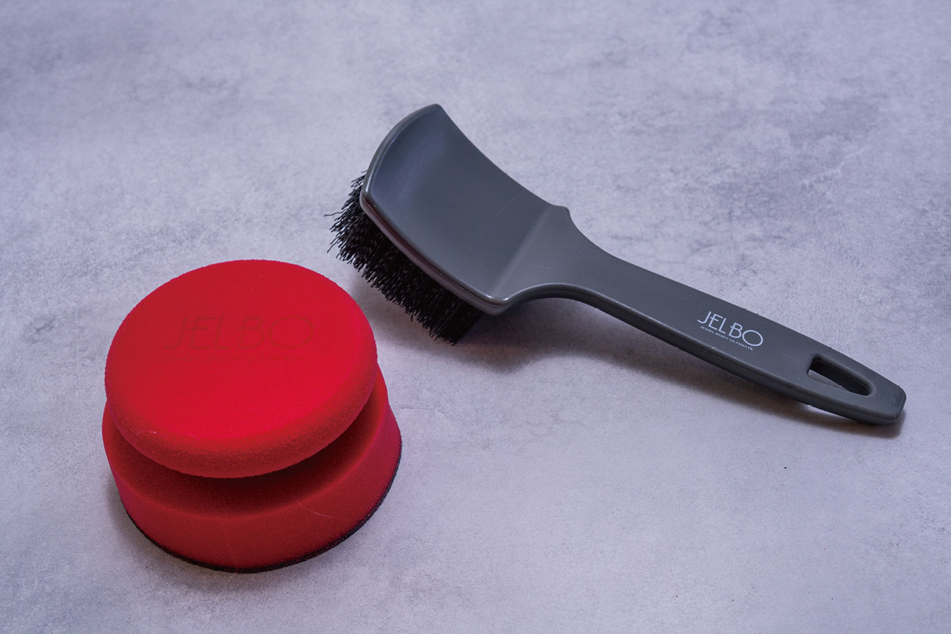 クレイスポンジは、表面にラバースポンジを採用することで洗いながらボディ/ガラス面の鉄粉を除去することができるスグレモノ。鉄粉除去剤のメタルリムーバーを併用するとさらに効果が増してくる。鳥ふん、虫の死骸、花粉、黄砂、タール、ピッチの除去にも使用できる。そしてタイヤクリーニングブラシは、単なる洗車ブラシではなくコシの強い毛を採用したタイヤ専用だ。タイヤの凹凸や溝に入り込んだ汚れもしっかりと落とすことが可能。手にしっかりとフィットする握りやすい形状なので作業性にも優れている。タイヤクリーナーと併用すると効果大。