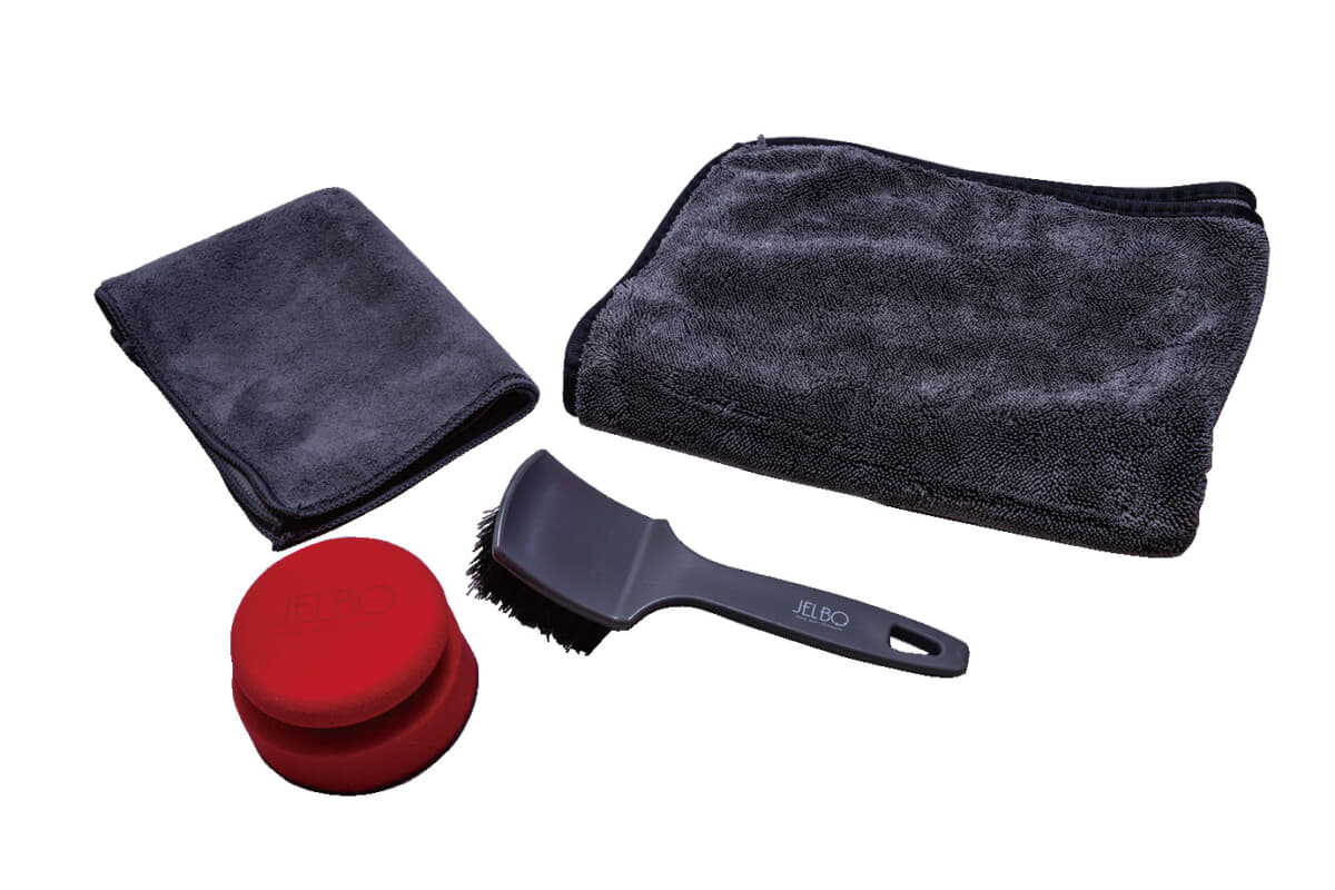 洗いながら鉄粉除去ができるスポンジやタイヤ専用ブラシなど高機能アイテムを設定