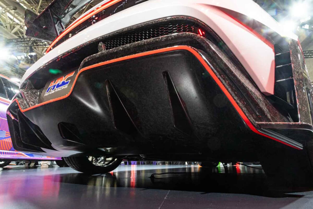 この「HRCパフォーマンスパーツ」で目を引くのは、まずオーバーフェンダーとGTウイングだ。リアディフューザーなどの空力パーツとともに、これらは機能パーツとしてもかなり期待ができるはずだ。またフロントとリアのバンパー、サイドスポイラーは、ストリートでも魅力的に見える専用デザインを採用している。
