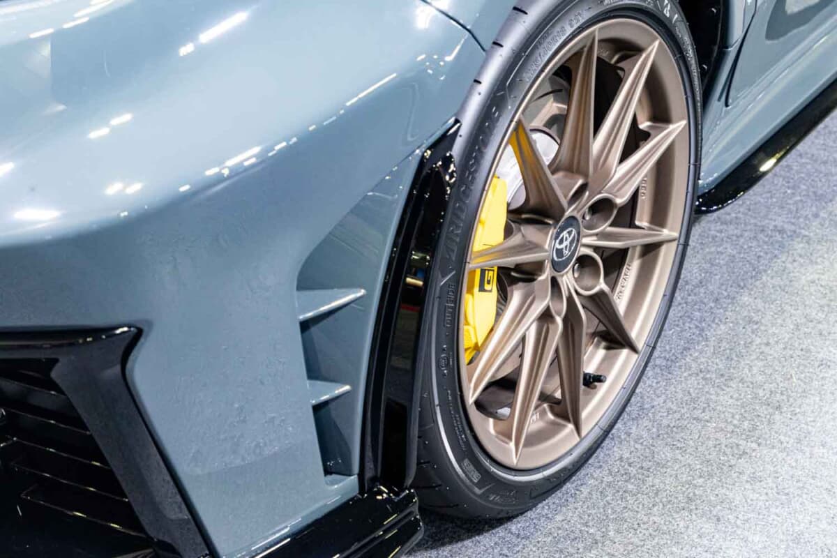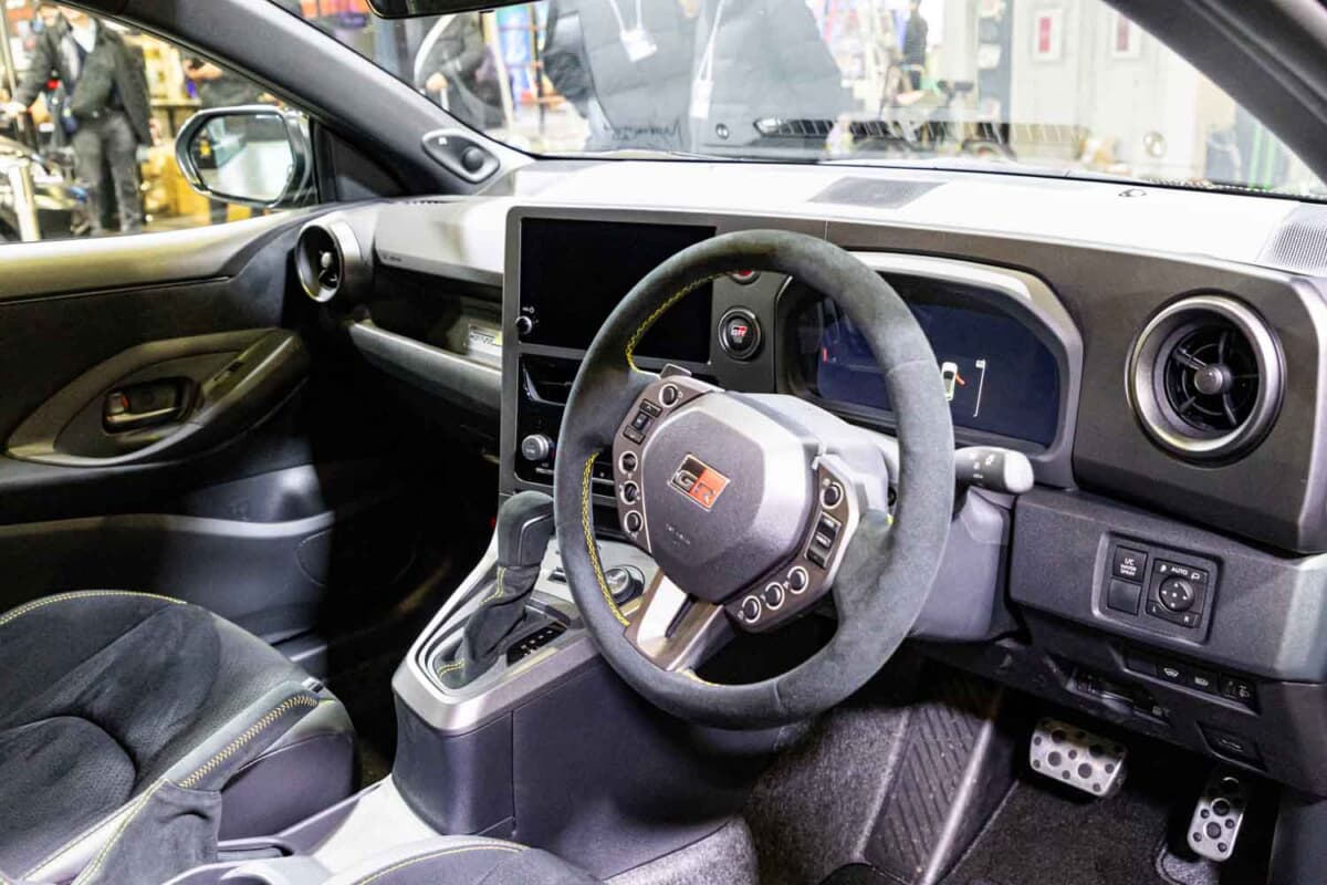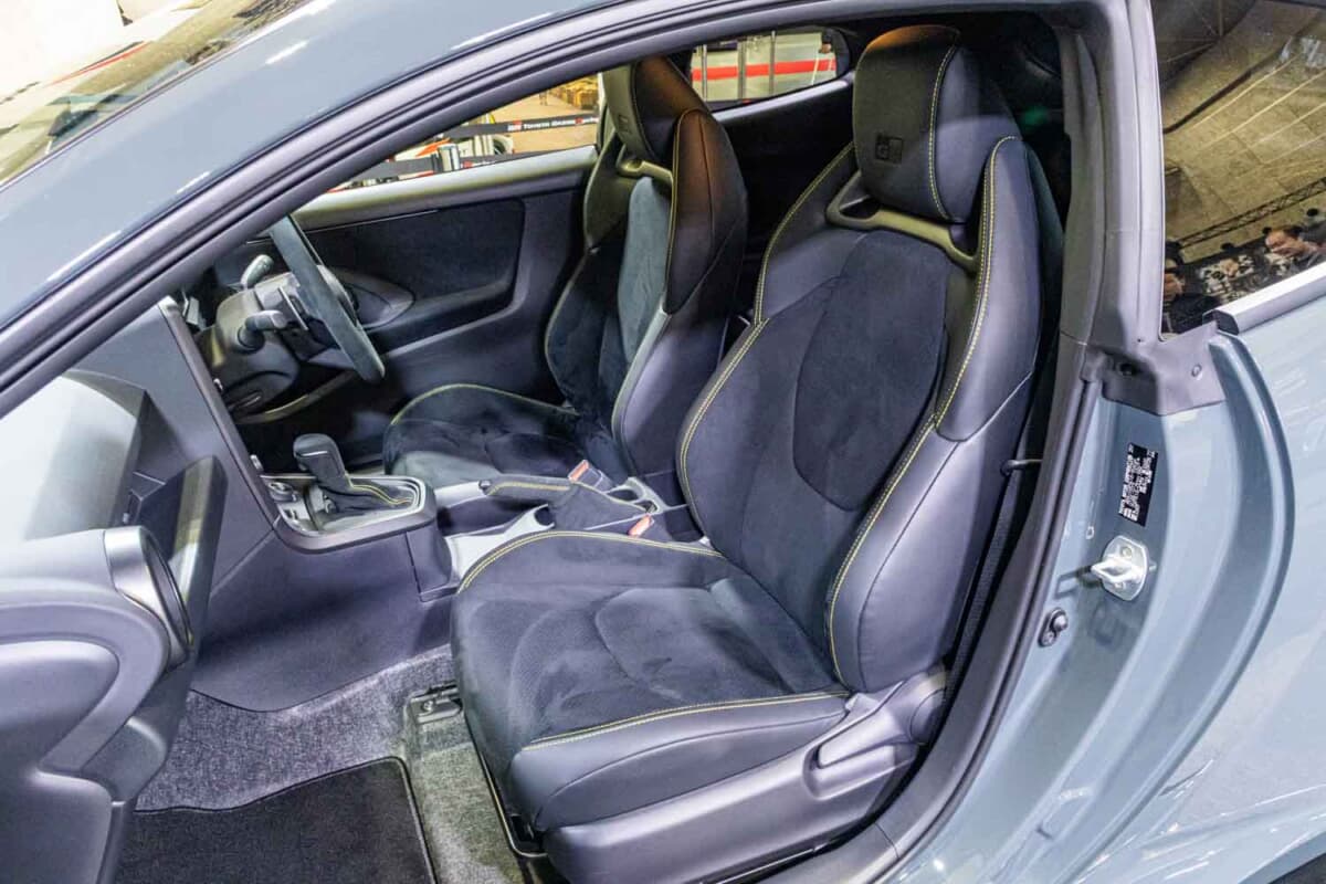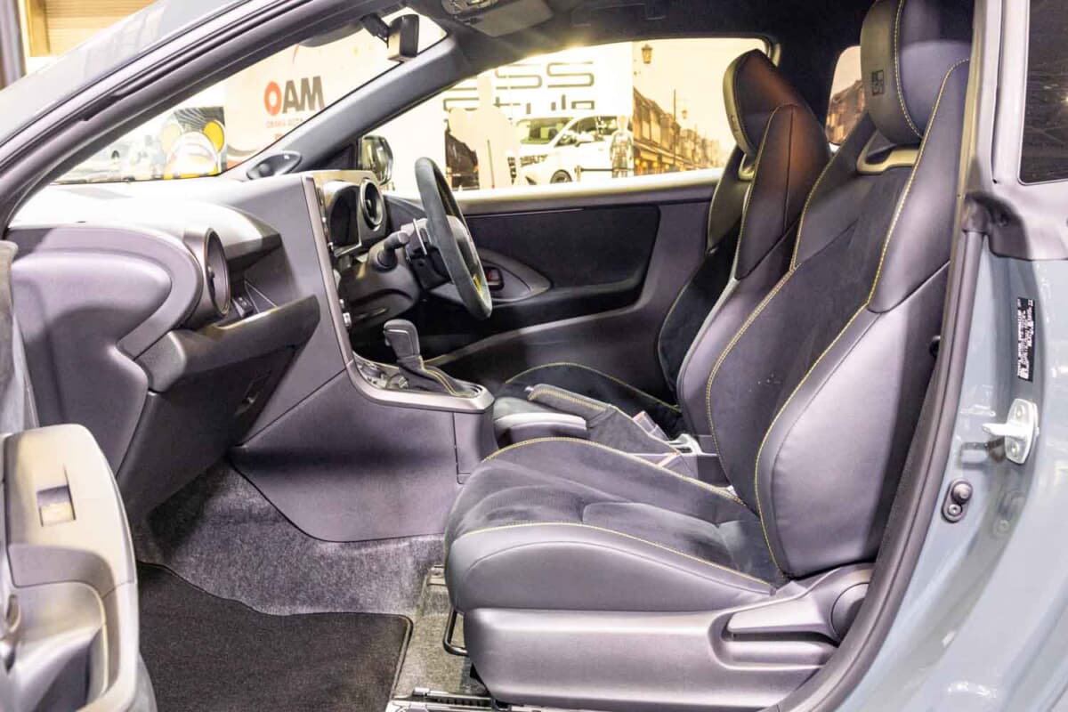 また、モリゾウのシグネチャーカラーとして知られるイエローは、ブレーキキャリパーとインテリアのステッチなどに採用。ホイールも専用カラーのマットブロンズで、ラジエータグリルもこのクルマだけピアノブラックとなり、重心を低く見せることに貢献している。