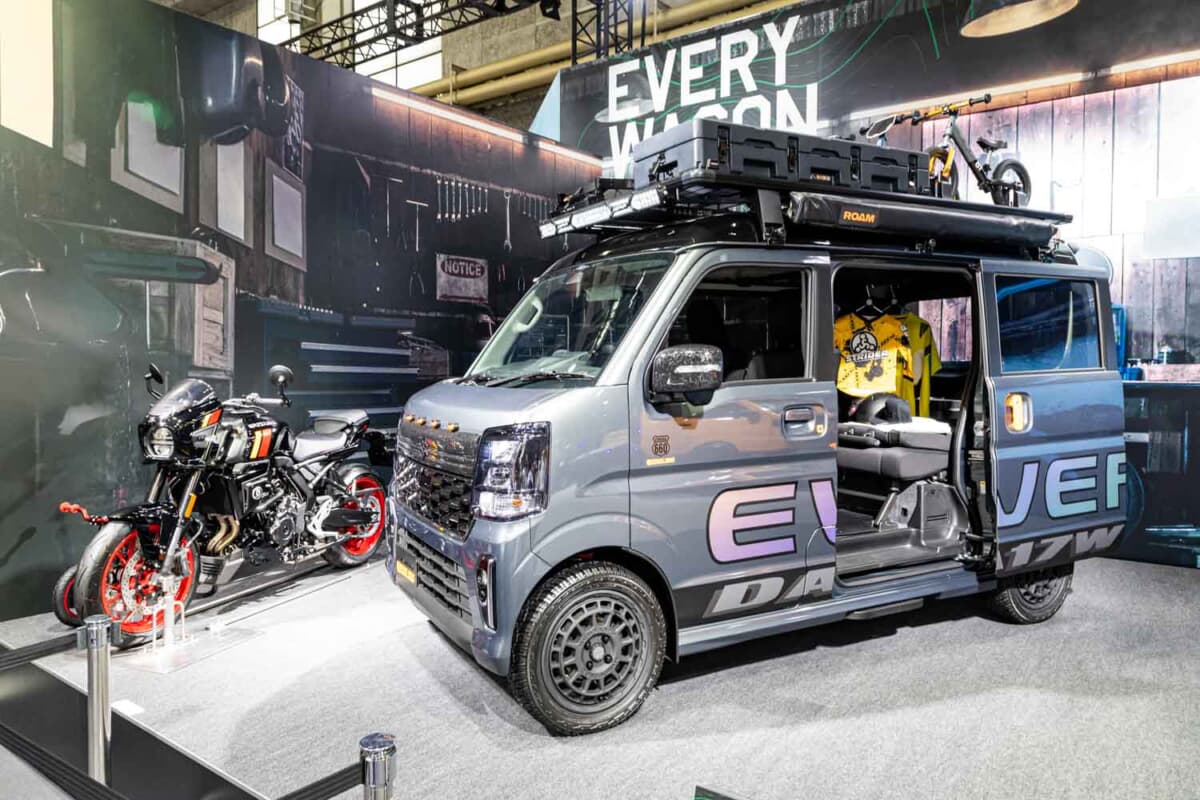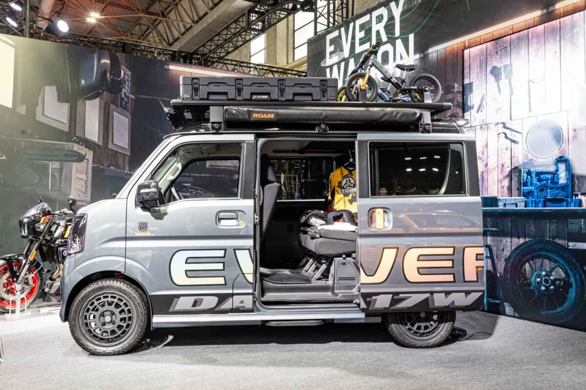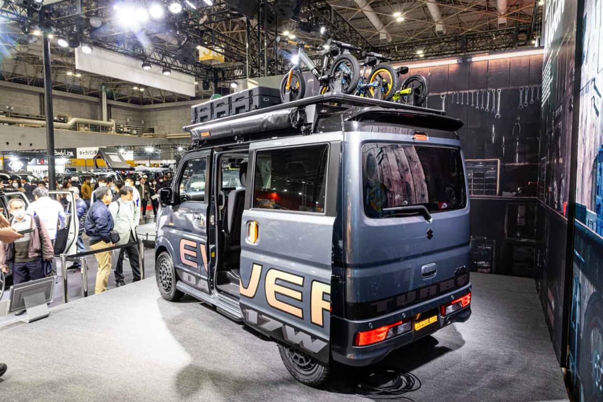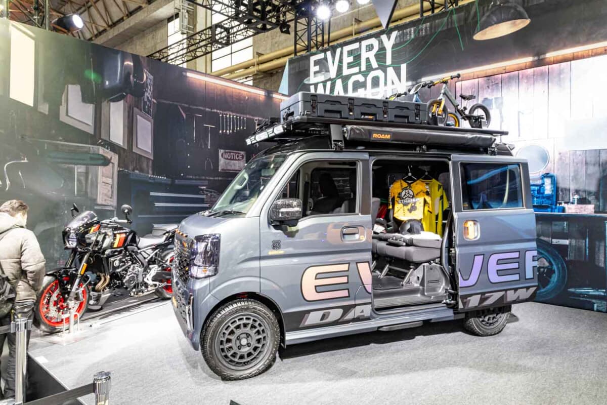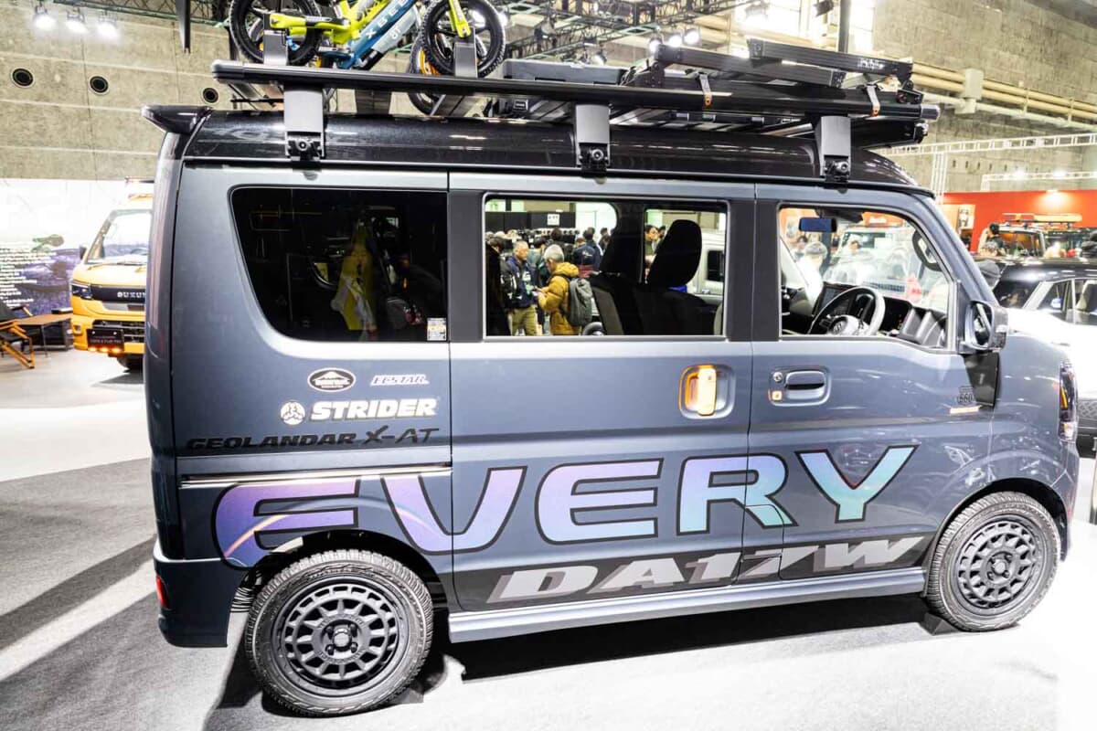 足まわりは20mmのリフトアップを施し、フロントにはピックアップトラックを彷彿とさせるマーカーランプを装備。ライダー(2輪乗り)のタフな世界観と、現代のアウトドアトレンドを融合させたその姿は、商用・実用車としてのイメージを脱ぎ捨て、頼れる相棒としての新しいエブリイ像を提示していました。