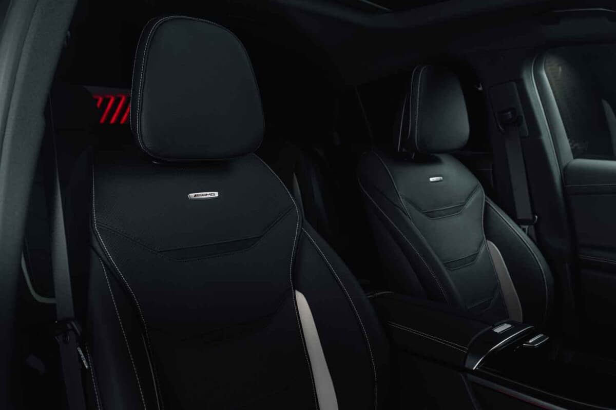 • メルセデスAMG GLC 53 4MATIC+:シートにはゴールデンアクセントパッケージならではのブラックレザーのスポーツシートを採用