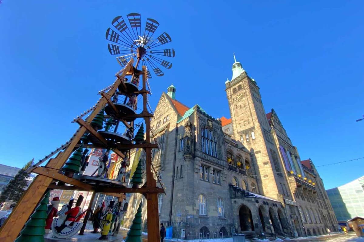 二日目はケムニッツ市内に観光へ出かけました。友人の運転でケムニッツ中央駅の駐車場まで行き、そこから市内へ向かいました。駐車券を買おうと私が券売機へ向かったところ、アプリに登録しているから現金なしで駐車出来るからいいよと言われました。友人は80歳ながらアプリをサクサク操作して駐車料金の設定をしていましたが、メカオンチでハイテクが苦手の私ならモタモタすること間違いなく、現金でチケットを買った方が早いと思ったほどです(笑)。