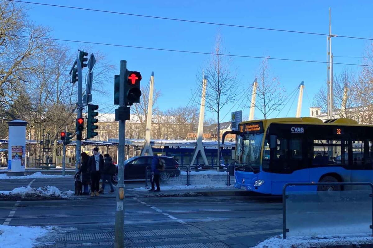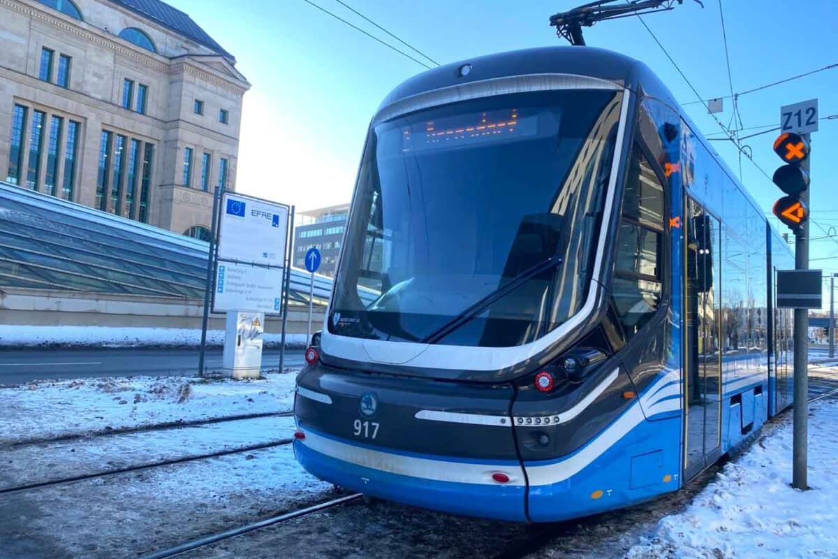 中央駅内はこじんまりとしていたのですが、ホームには在来線の他にも路面電車がそのまま入って来るので、乗り換えが非常に便利です。ケムニッツ市の人口は25万1069人(2025年1月末現在)に対し、市内をひっきりなしに路面電車やバスが走っていて驚きます。ドイツで公共交通機関のインフラが整う街のNo.1は首都ベルリンですが、ケムニッツがそれに次いで第2位だそうです。