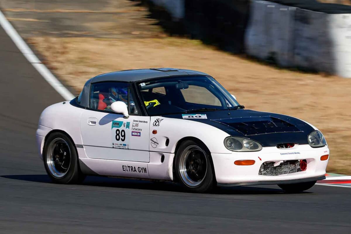 100馬力までのタービン交換が認められた2クラスは、今回も89#松山雄大と173#阿部優翔のバトル。練習走行は松山の1分43秒206に対して阿部が0.156秒のビハインド、予選は1分42秒430で阿部が逆転するも、わずか0.158秒遅れで松山が続く。ふたりの接戦は決勝がスタートしてもまったく変わらず、互いにコースレコードを塗り替えながらラップを重ねる。転機が訪れたのは3周目。軽さに勝る松山のカプチーノが阿部のS660をパスし、トップに躍り出るとじわじわとリードを広げていく。阿部の猛追もわずかに及ばず、松山が逆転での優勝となった。