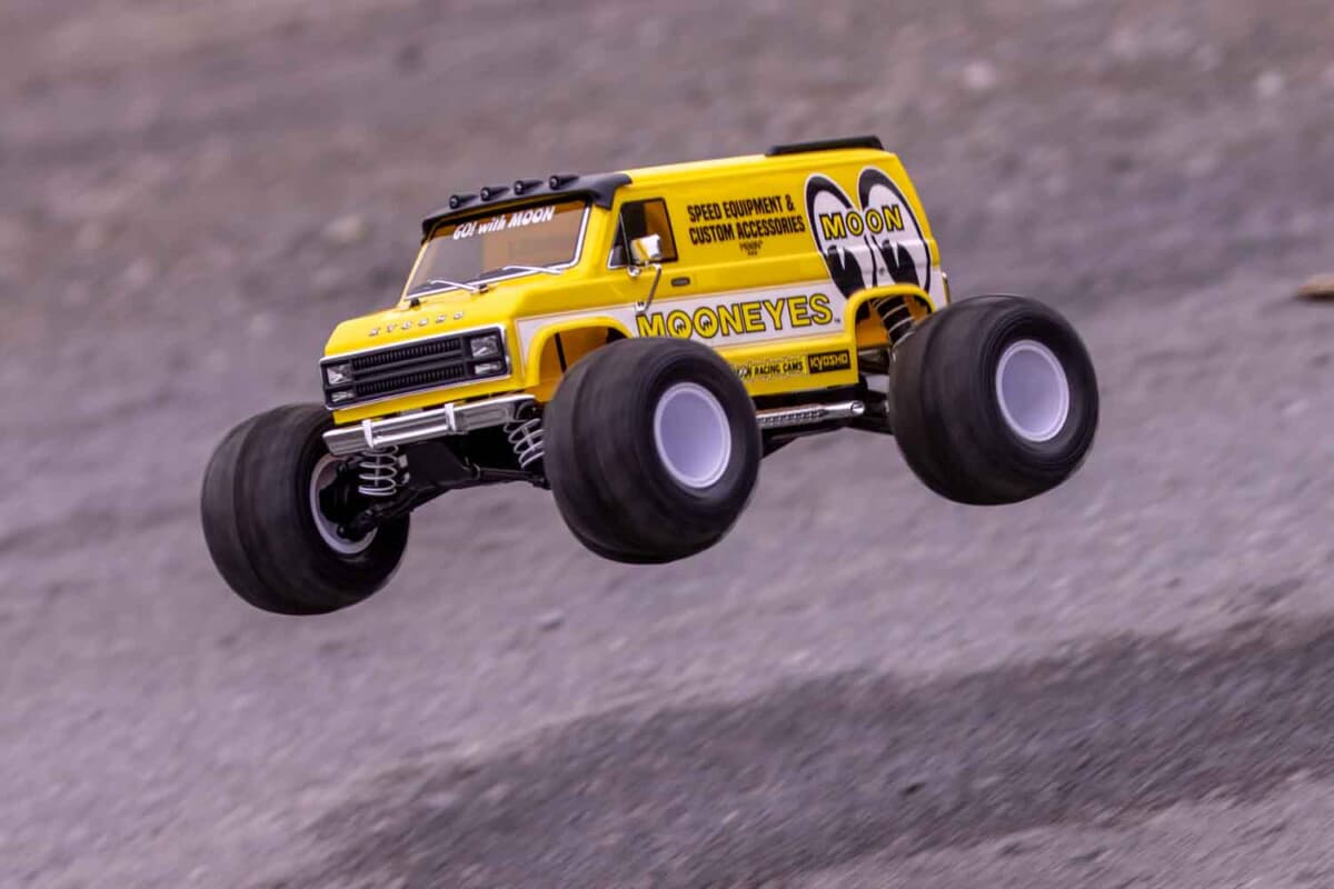 日本にはタミヤと京商という世界に誇るホビーメーカーが存在する。タミヤの「ランチボックス」に代表されるように、アメリカンフルサイズバンを題材にしたRCカーには、改造を前提とした豊かな遊びの文化が根付いている。だが、京商のマッドバンはアプローチが少し異なる。特定の車種を忠実に再現するスケールモデルではなく、誰もが頭のなかに描く「カッコいいアメ車バン」の理想を形にした独自デザインを採用しているのだ。