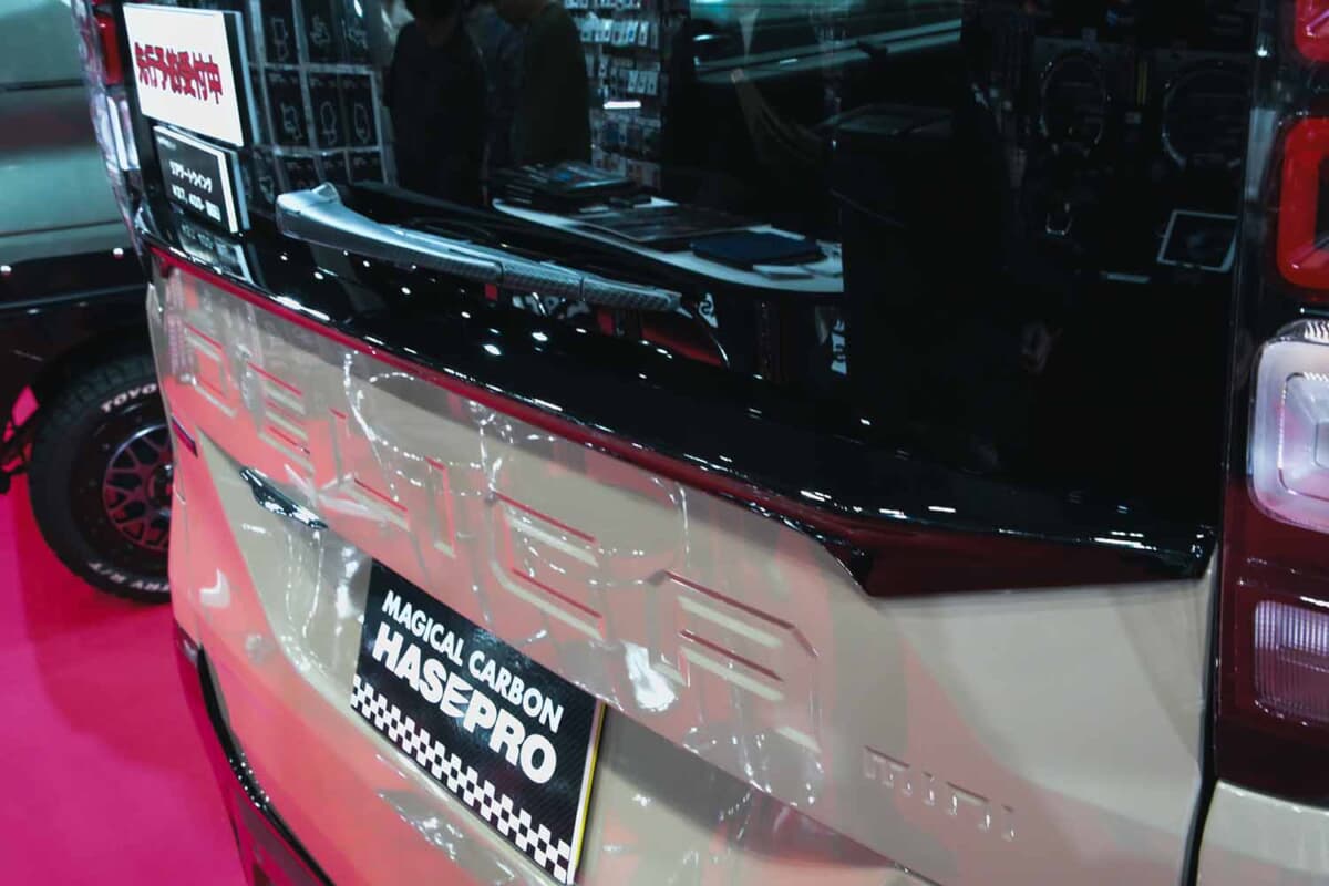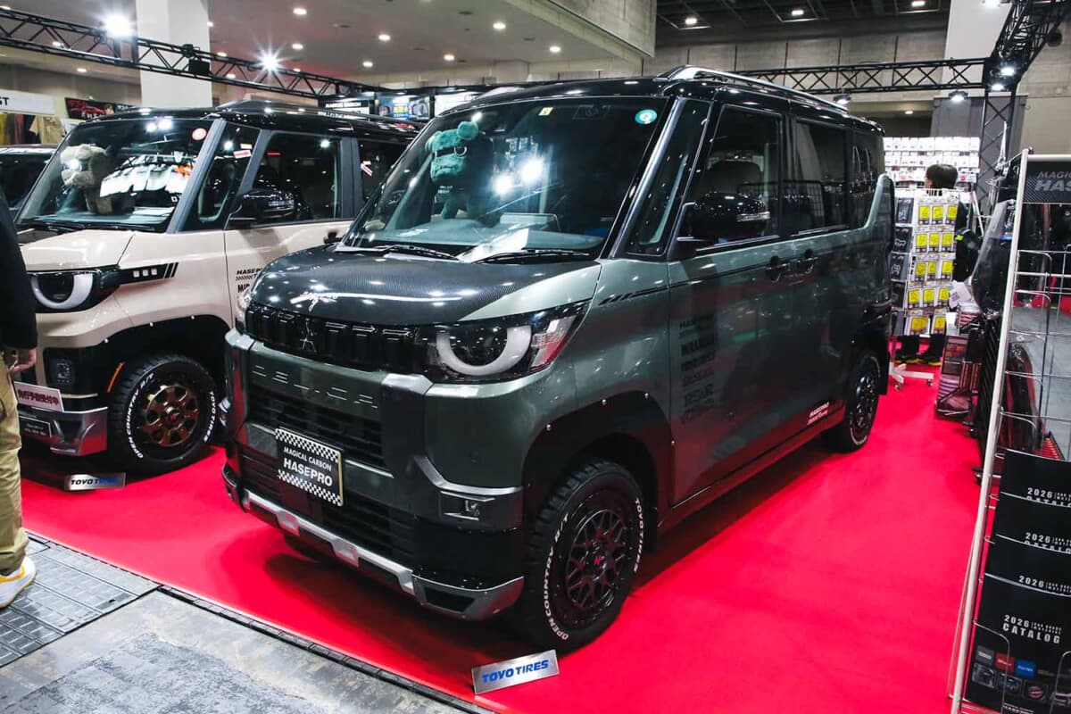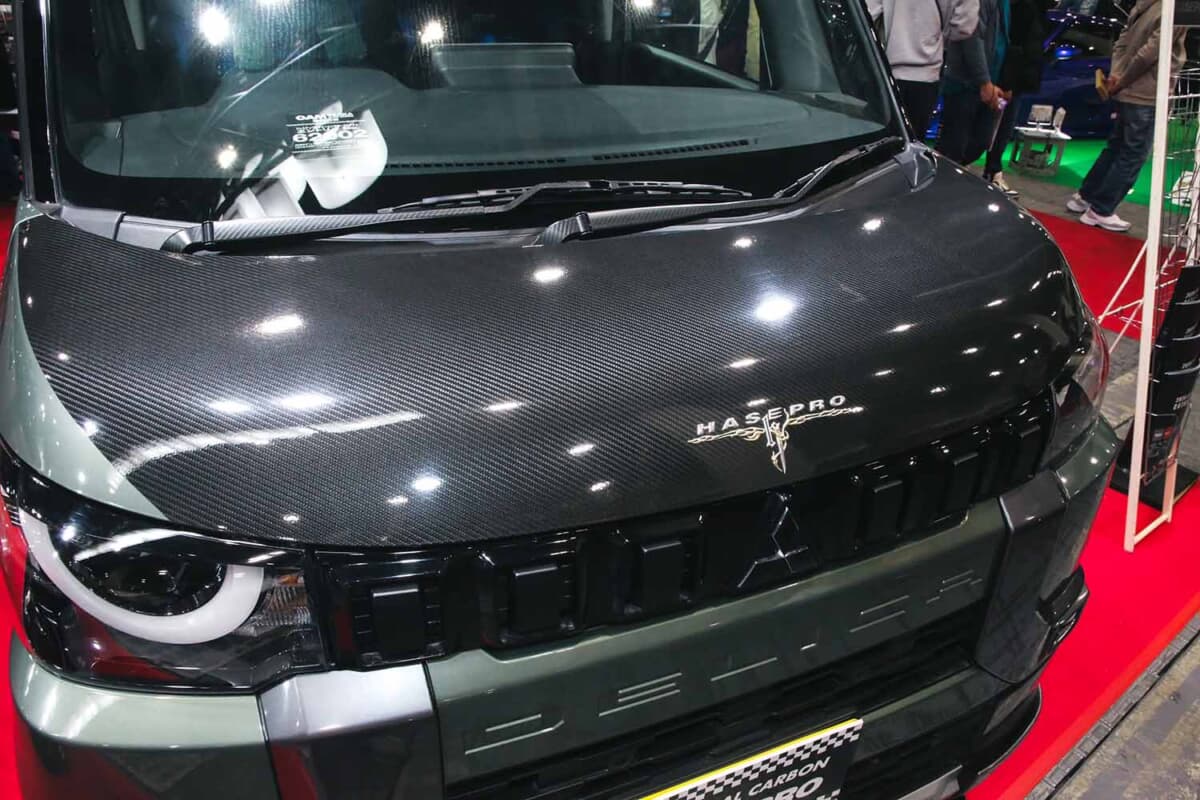 愛車をかわいく、カッコよくするためのドレスアップアイテムやオリジナルのカーグッズ、人気のカーボンシートなどを幅広く取り扱っている大阪のカーグッズブランド、ハセ・プロ。安心安全の日本製で、長く使える高品質なパーツを数多くそろえていることでもおなじみだ。そんなハセ・プロがいま力を注いでいるクルマが、やればやるだけカッコよく、かわいくなる素材として好評なデリカミニだ。大阪オートメッセ2026の会場ではオリジナルパーツを搭載したデリカミニを展示し、気軽に使えて効果的な専用アイテムをお披露目していた。