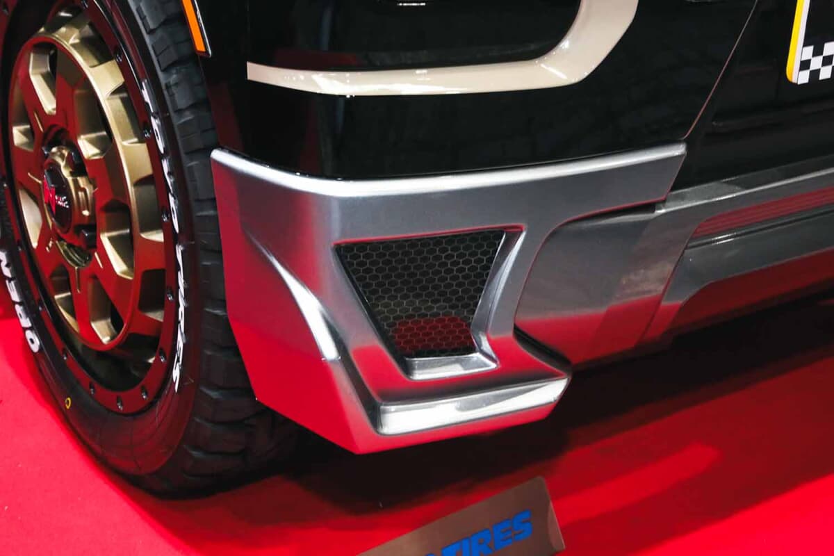 ラプター塗装とは、施工後にザラッとした質感が生まれる塗装のこと。オフローダーならではのワイルドさや力強さを演出できる、いま最も注目される仕上げのひとつだ。これを貼るだけで手軽に実現できるのは、大きなメリットだ。特にオフロード方向のカスタムがよく似合うデリカミニにとっては、ワンポイントとして加えるだけでもスタイルの完成度が上がるから、オーナー必見のアイテムだ。ハセ・プロの貼る塗装シリーズ、今後のバリエーション拡大も含めた動向に注目したい。