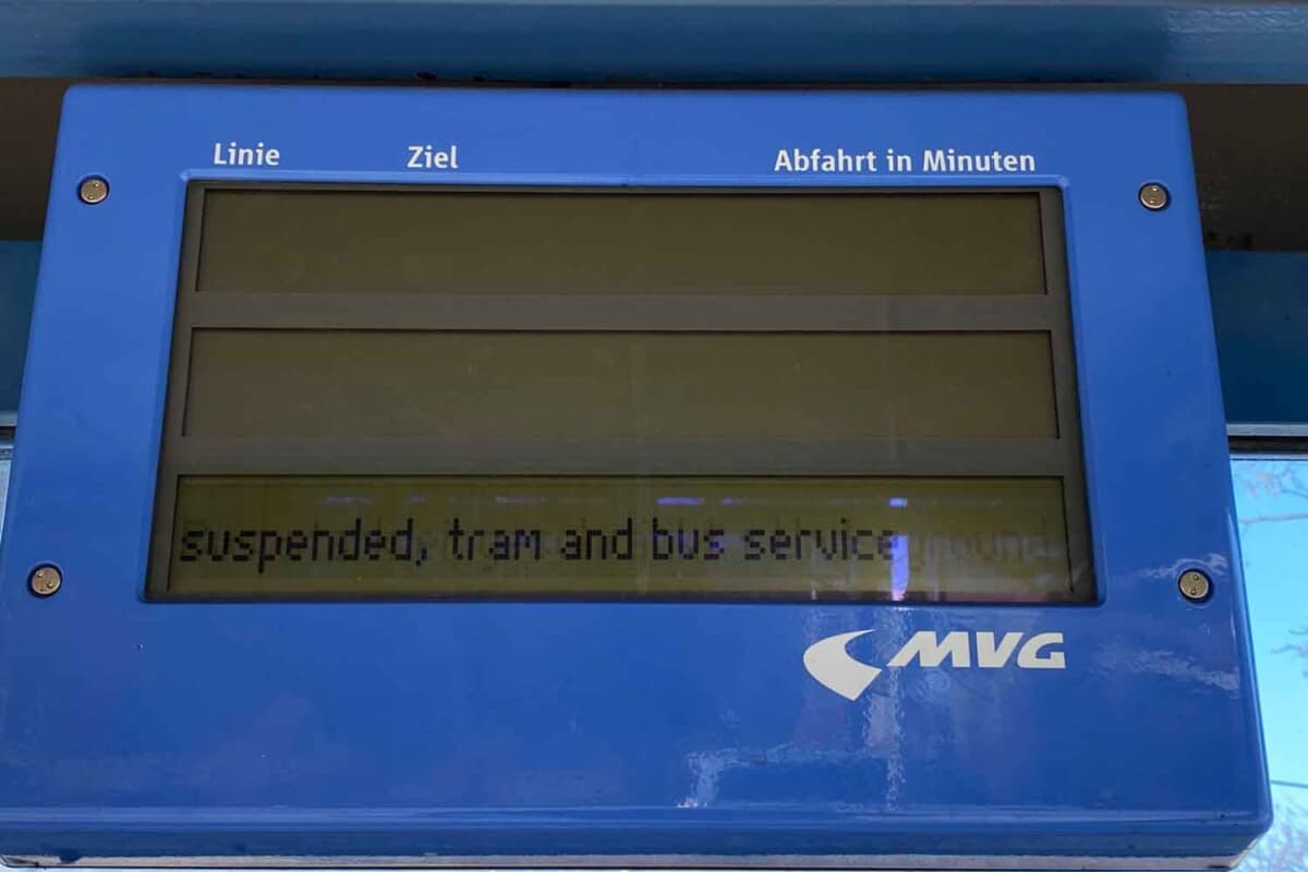 ミュンヘン市内を数多く走行するトラムの中で、南北を長距離で結ぶ20番線だけは20時まで限定で唯一運行され、ミュンヘン市営交通のインフォメーションセンターは16時まで営業するなど、市民生活が完全にストップしないように、何とか最低限の対策はなされていたようです。