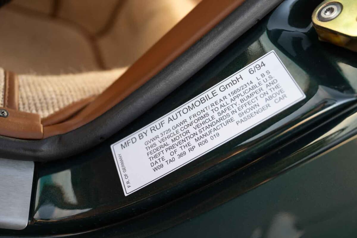 RUFが独立した自動車メーカーであることを証明するのは、1981年にドイツの運輸省から付与された、シャシーナンバーの最初に掲げられるプレフィックス(識別番号)「WO9」。ちなみにポルシェのそれは「WPO」であるから、RUF車とポルシェ車は、まったく異なるメーカーの作と考えることができる。もちろん日本でもRUFはRUFであって、車検証もポルシェではないのだ。