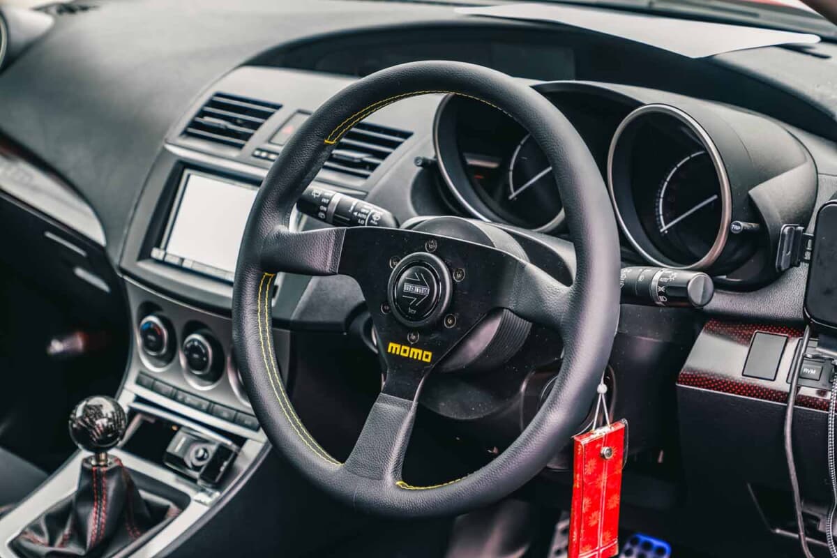 • マツダスピードアクセラ:ステアリングは、モモのボルクレーシング(350mm)