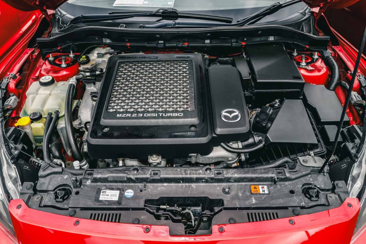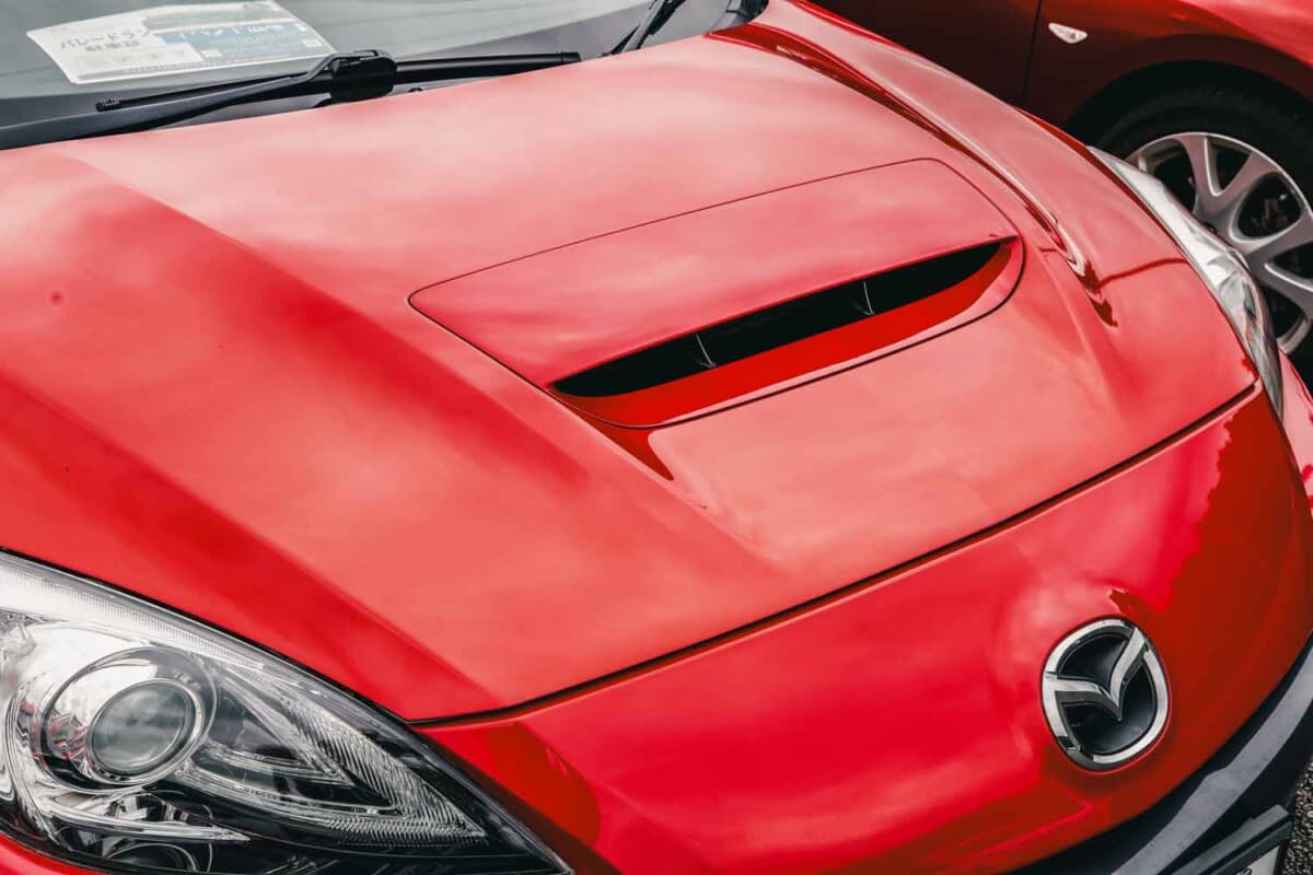 • マツダスピードアクセラ:純正の迫力あるボンネットダクトは、ターボ車ならではといえる