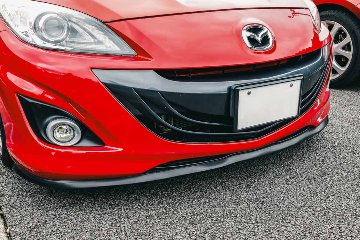 • マツダスピードアクセラ:ボディデザインの印象を崩さず低く見せるために、イージーリップを装着している