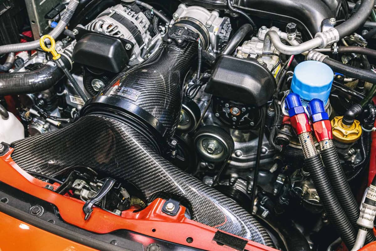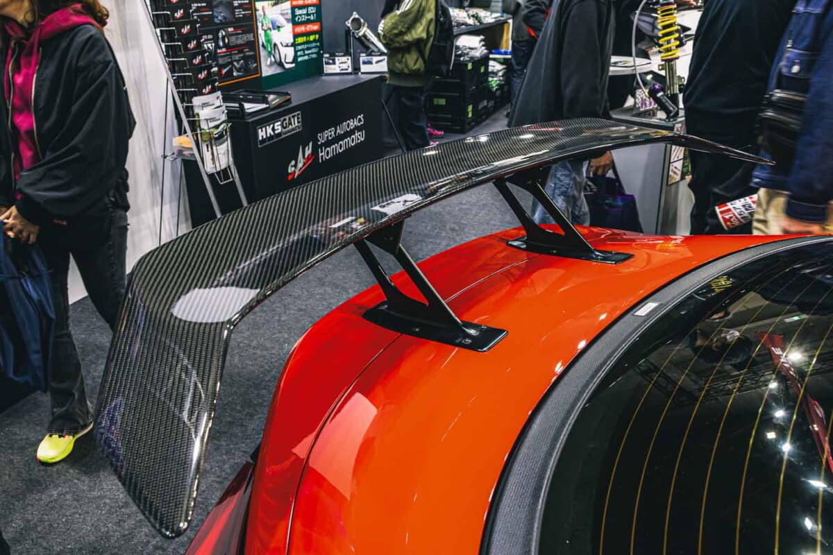 「過給機に頼らずにパワーアップをした上で、例えばタワーバーやマフラーなどチタンが選べるものはチタンを使って、FRPとカーボンモデルがあればカーボンを選んでというかたちで軽量化を行って、エンジンパワーに頼らずセットアップでどこまで行けるかを突き詰めています」