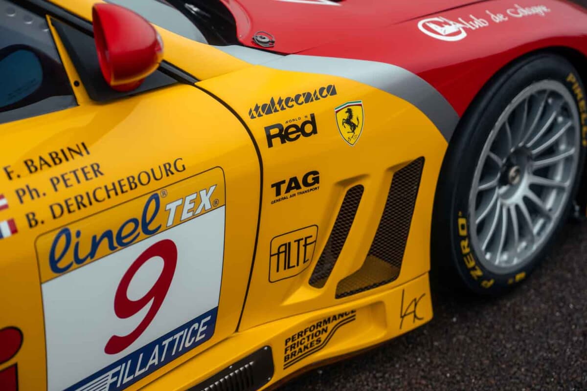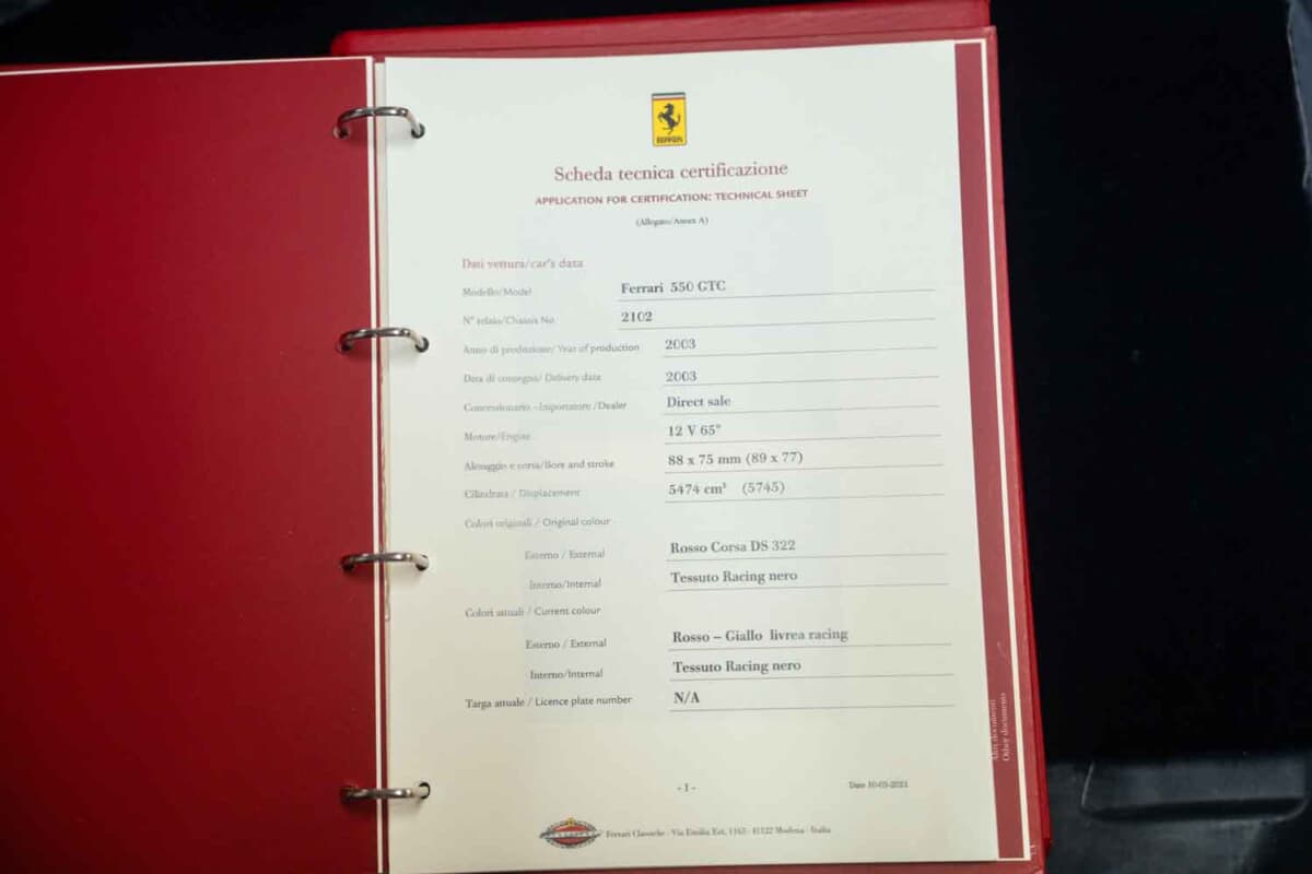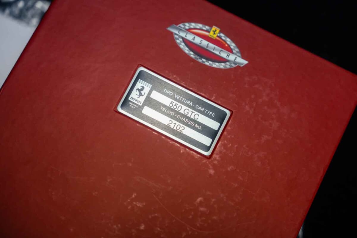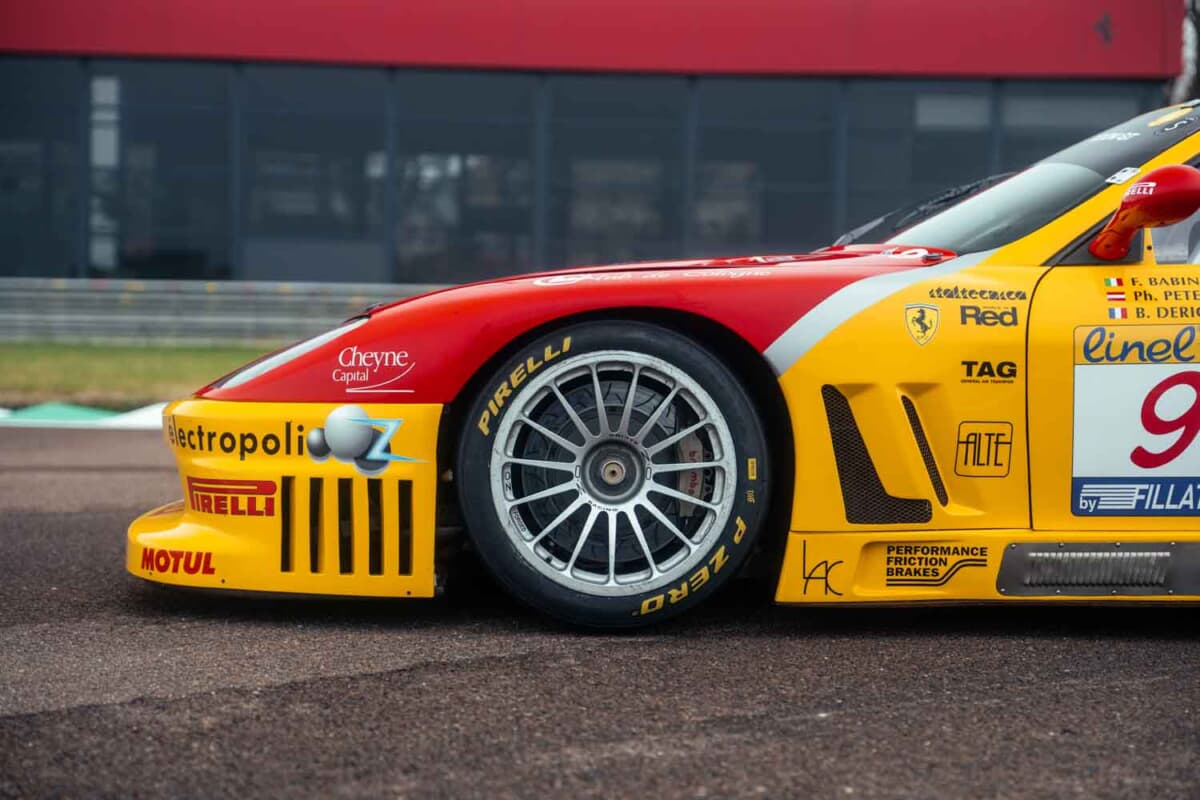 このほどRMサザビーズ「PARIS 2026」オークションに出品されたフェラーリ 550 GTCは、その2台のうちの1台。シーズン第5戦のイギリスでのドニントン パークで初走行を果たしたシャーシNo.#2102である。デビュー戦ではフィリップ ピーター/ファビオ バビーニ組に委ねられ、14番手スタートから総合18位(クラス10位)でフィニッシュした。