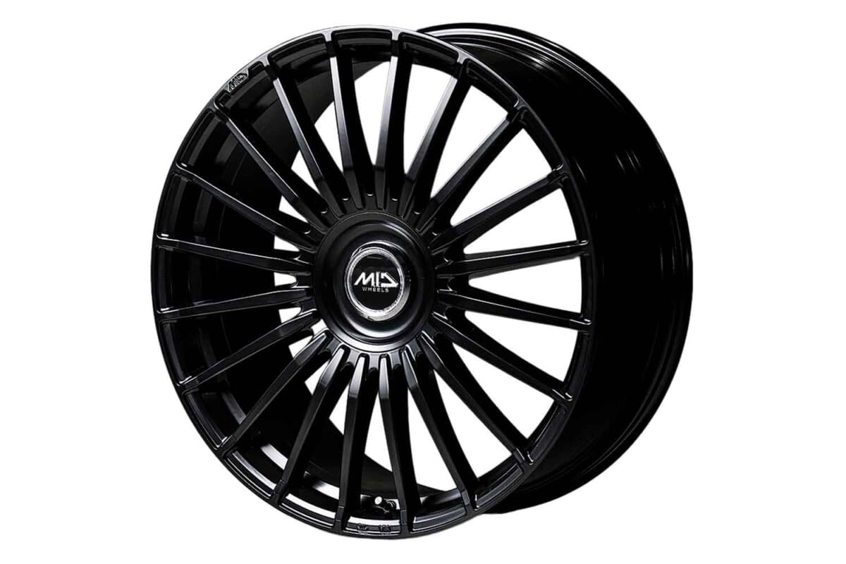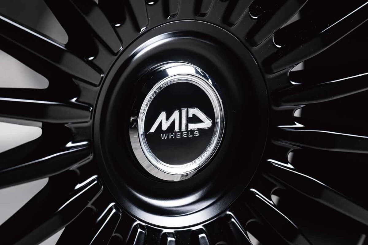 MID EXCLUSIVEから新たに登場した「020F」は、トヨタ アルファード&ヴェルファイアの重量感あるボディを品良く支えるホイールだ。そのクルマがワンランク上に見えるように考え抜かれた、20本のフィンスポークデザインを採用している。