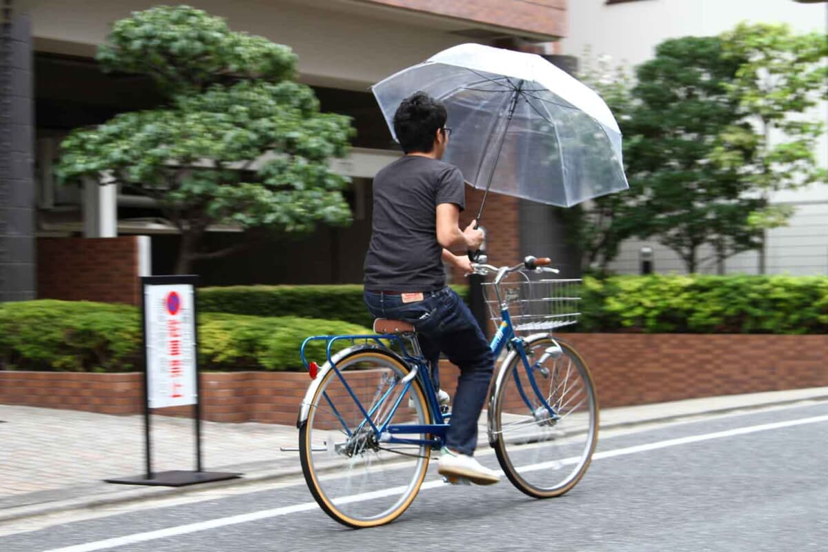 • 雨の日の傘差し運転。都道府県の公安委員会遵守事項違反となり、反則金の対象だ。片手運転になることでブレーキ操作が遅れ、とくに濡れた路面では転倒のリスクが跳ね上がるため絶対に避けたい