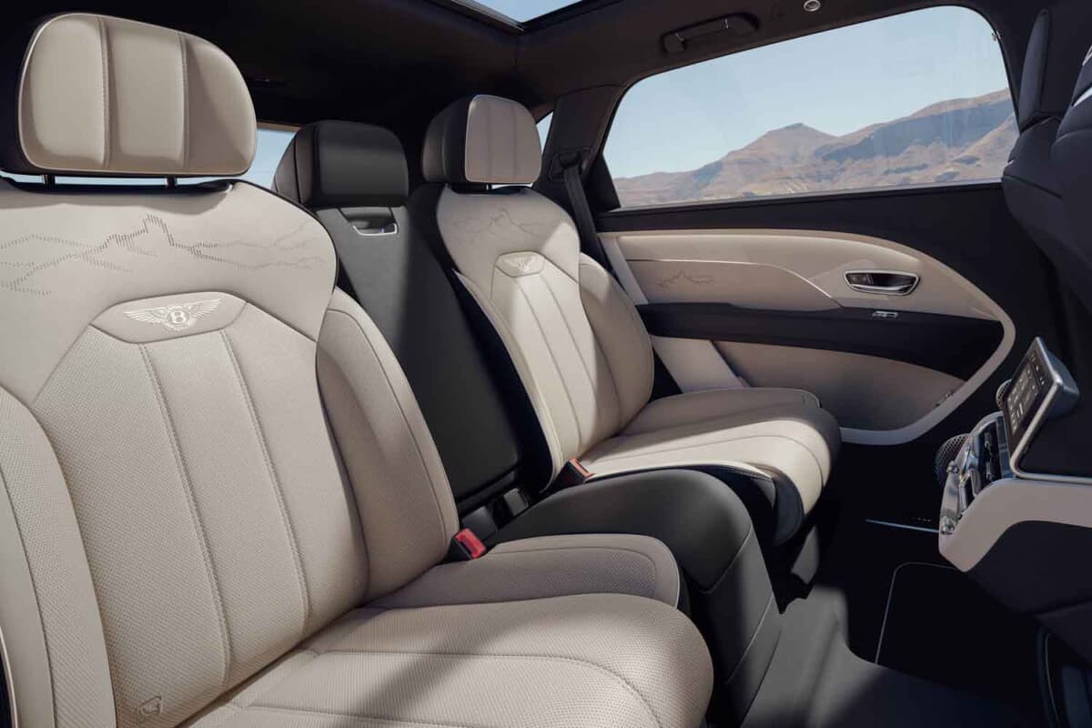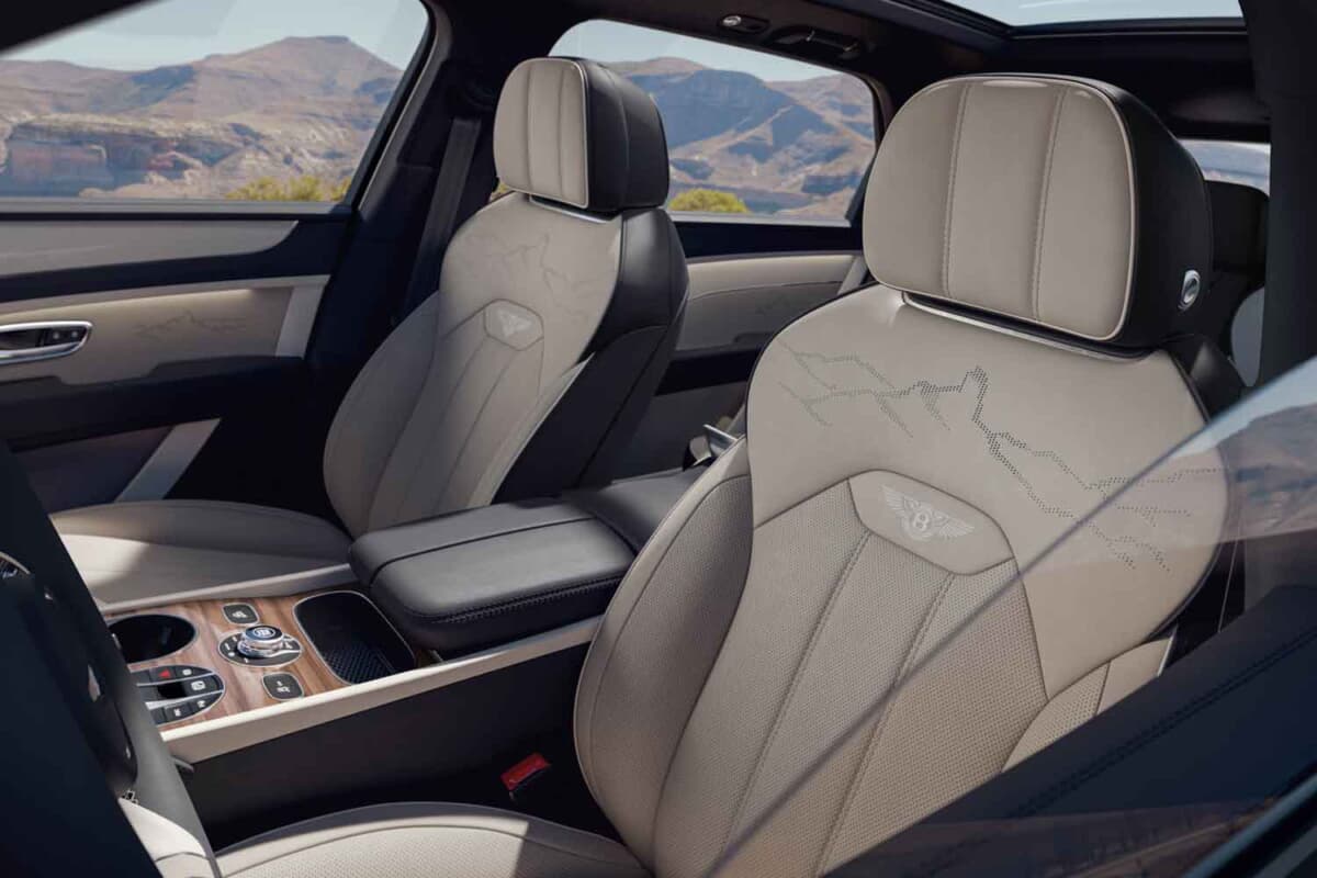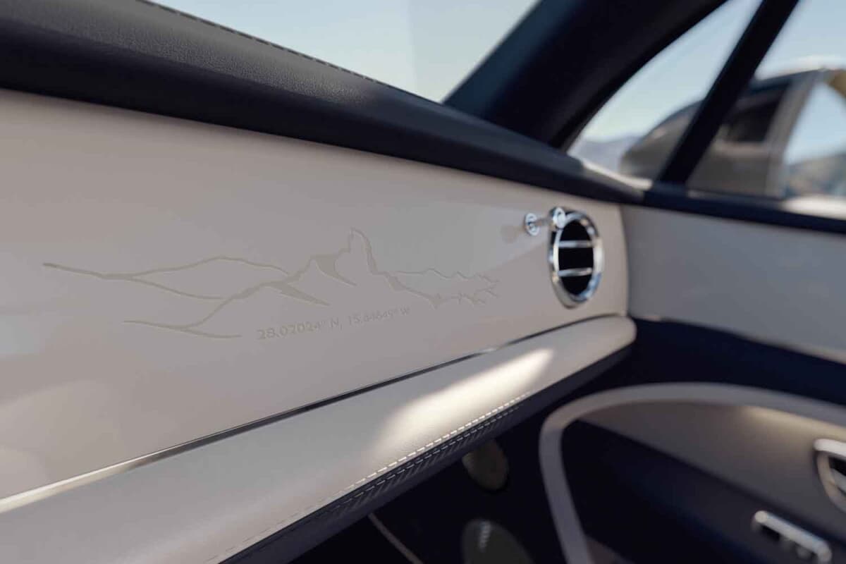 エクステリアでは、ロケ・ベンテイガ峰をモチーフとしたデザインを各部に採用。フェイシアには山岳モチーフとともに、ロケ・ベンテイガの正確な経度および緯度がエッチングされている。また同モチーフは、シートのショルダーパネルやドアのレーザー加工パーフォレーションにも施され、ウェルカムランプのプロジェクションでも採用。