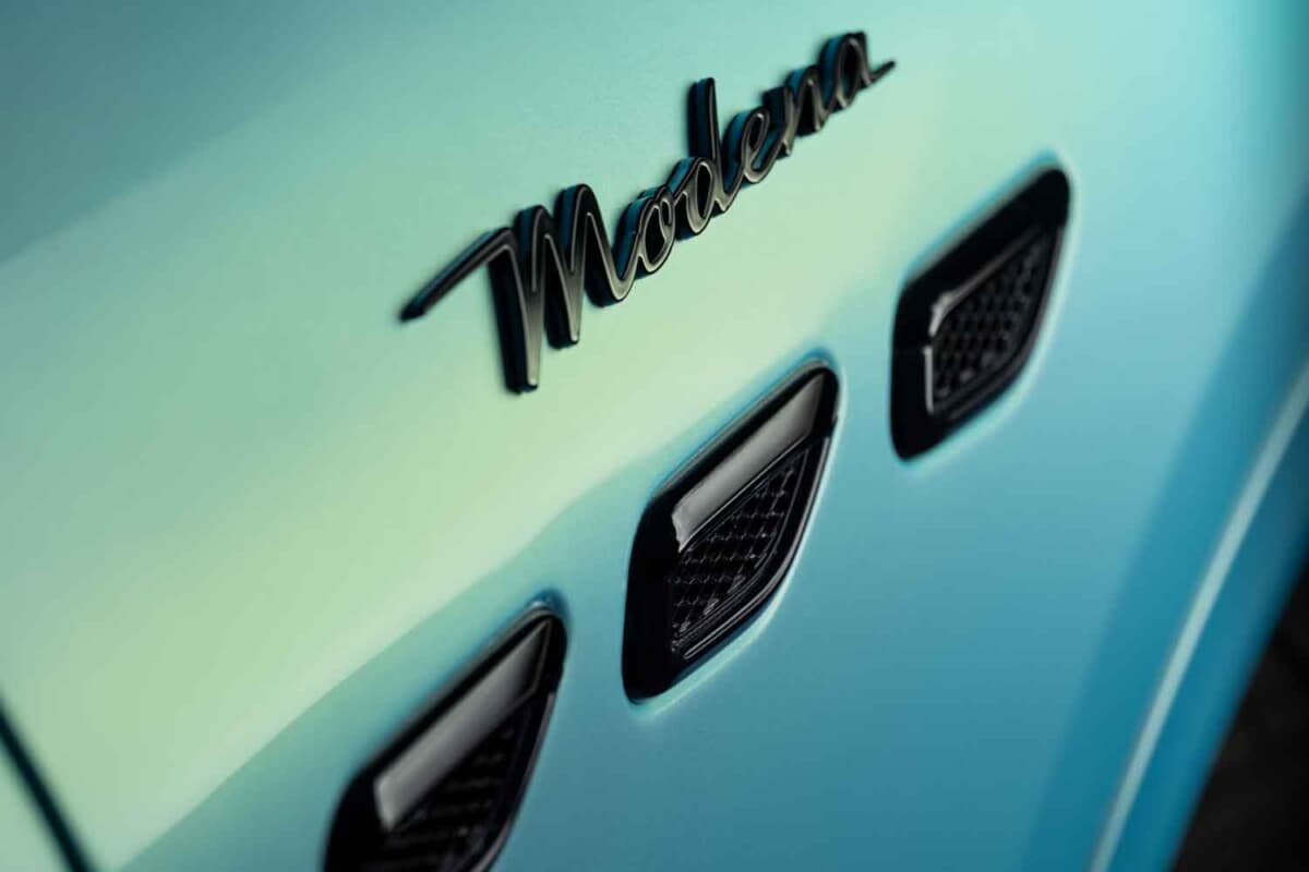 両モデルはマセラティのカスタマイズプログラム「フォーリセリエ」を通じて仕立てられ、それぞれ異なる美のテーマを表現した限定車。日本導入台数は、クリスタッロが2台、ルミナブルーが3台だ。まずはグレカーレ・クリスタッロだが、イタリア北部のドロミテ山脈の冬景色をモチーフにしている。ボディカラーには新規設定色となる「アズーロ アウレオ」を採用。青から白へと移ろう色調のなかに金色の粒子が輝く特別塗装で、雪山に差し込む光を思わせる幻想的な外観を生み出している。さらに、フォーリセリエによるビスポーク仕様としてフロントグリルをボディ同色で仕上げ、統一感のあるフロントフェイスを実現。