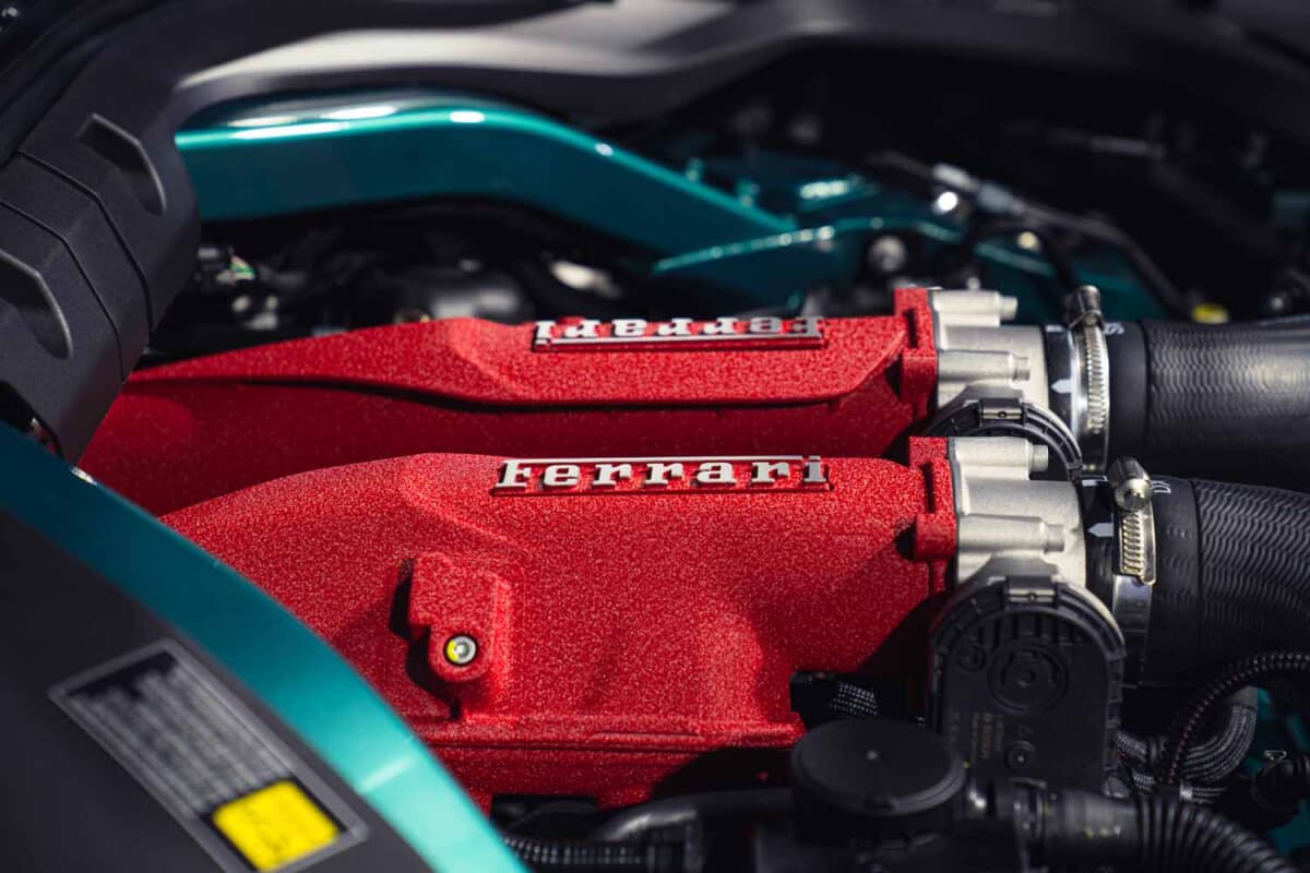 エンジンは先代「ローマ スパイダー」と同じ3,855cc・V8ツインターボを搭載するが、今回の進化はその中身にある。2基のターボを独立制御する新しい制御マップにより、最大タービン回転数は171,000rpmに到達した。各気筒列(シリンダーバンク)に専用の圧力センサーを追加したことで、アクセルを踏んだ瞬間のレスポンスも鋭くなっている。軽量カムシャフトの採用などでカムシャフトは4本で計1.3kg、エンジンブロックも再設計され約1kgの軽量化が図られている。