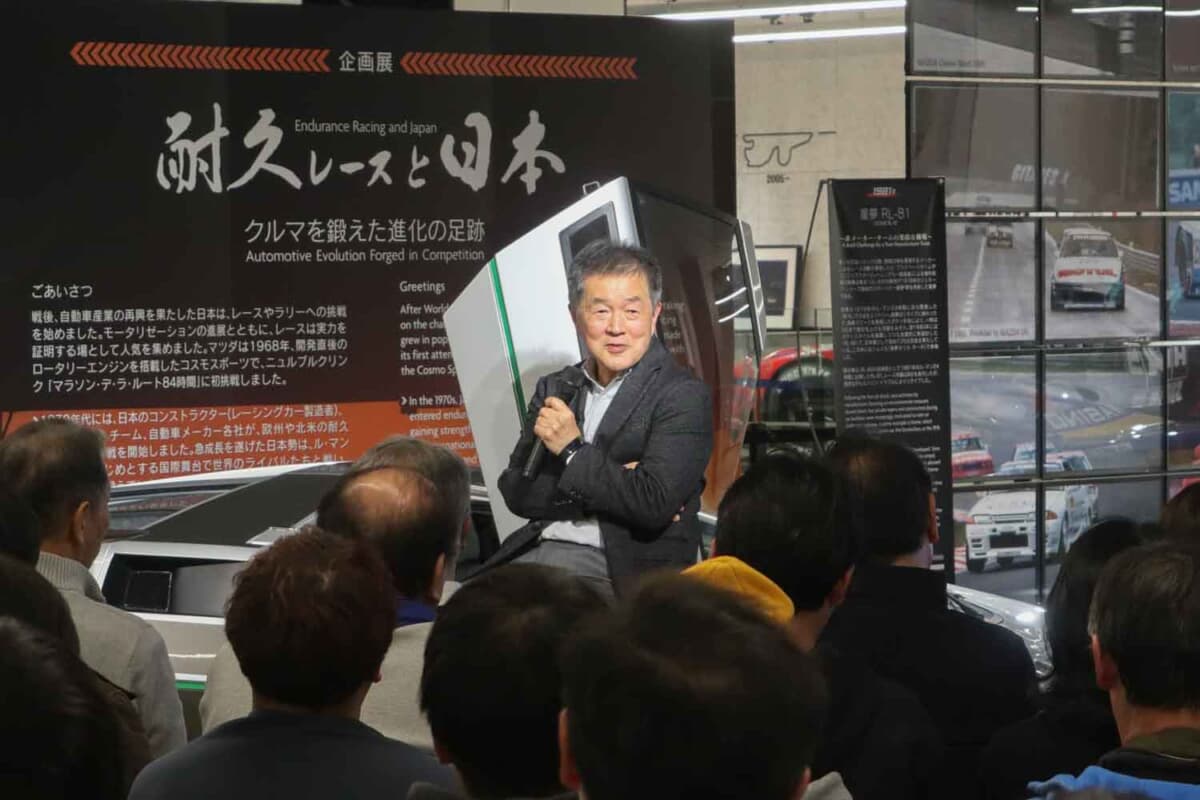 さらに、企画に沿ったイベントも順次開催されてきた。2026年1月17日には、数々の車両を手掛けた元童夢テクニカルディレクターであり、現在は東レ・カーボンマジック代表取締役社長を務める奥明栄さんのトークショーが行われた。