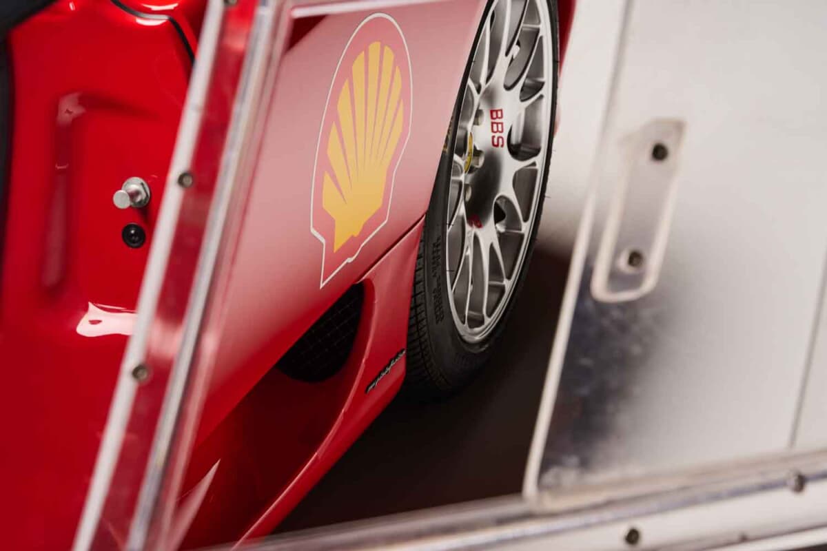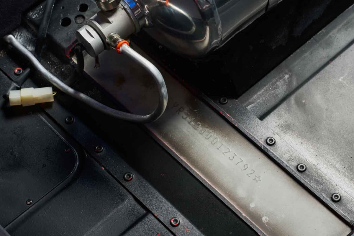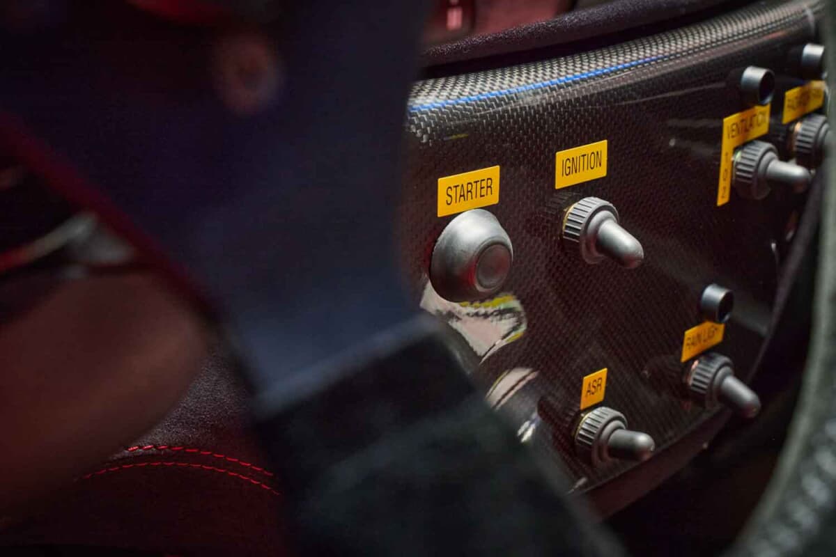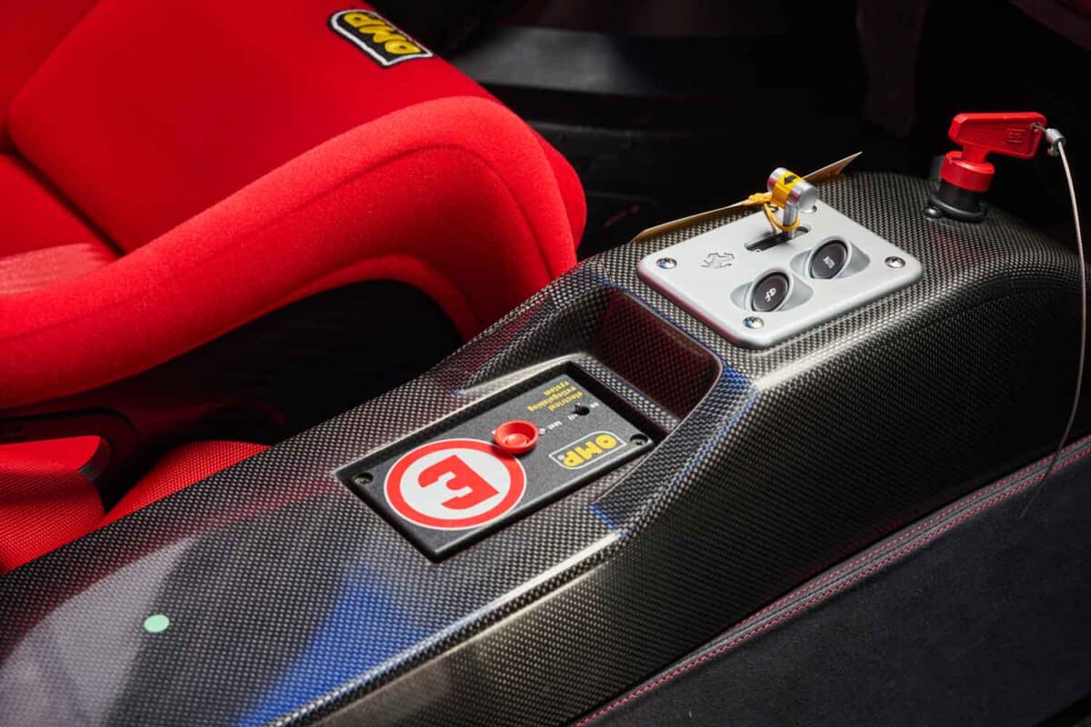 さらにはFIA規格のフルロールケージや自動消火システム、100L容量の安全燃料タンクも備える。「マニエッティ・マレリ」社製のデジタルディスプレイなど、レーシングマシンに必須のパーツが随所に装備されていた。