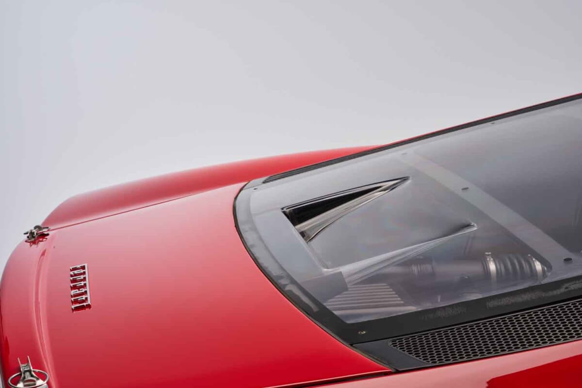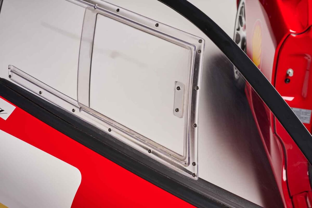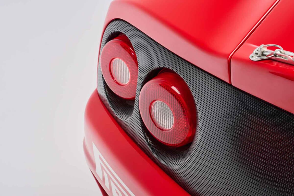 内外装の徹底した軽量化も特徴である。ウインドスクリーン以外の窓は樹脂製となり、サイドウインドウもレキサン製のスライド式に変更された。エアロパーツの一部や左右ドアはカーボンファイバー製だ。さらに軽量タイプの前後バンパーやリアの「チャレンジグリル」などを採用。結果として、360モデナ比で100kg以上の軽量化を果たしている。