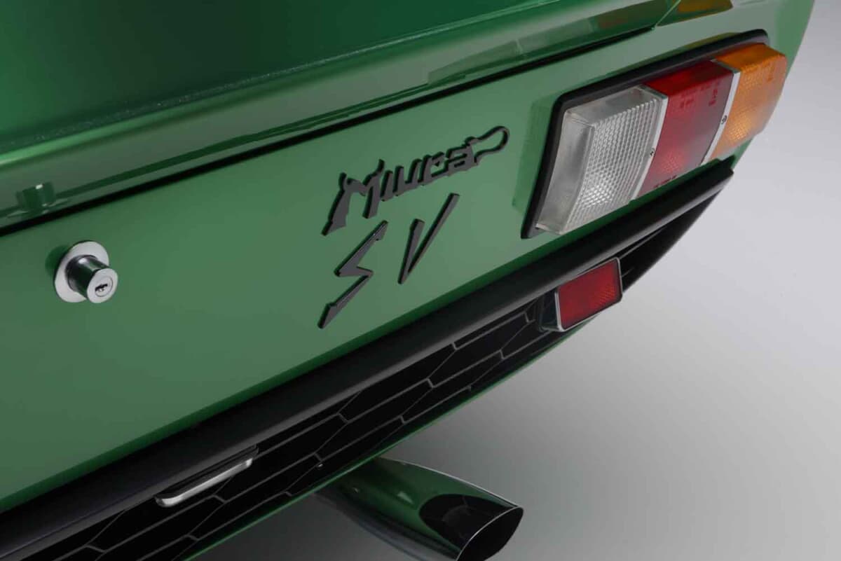 • ランボルギーニ ミウラ SV:リアに輝く「Miura sv」のエンブレム。超越した速さという称号が究極であることを示す