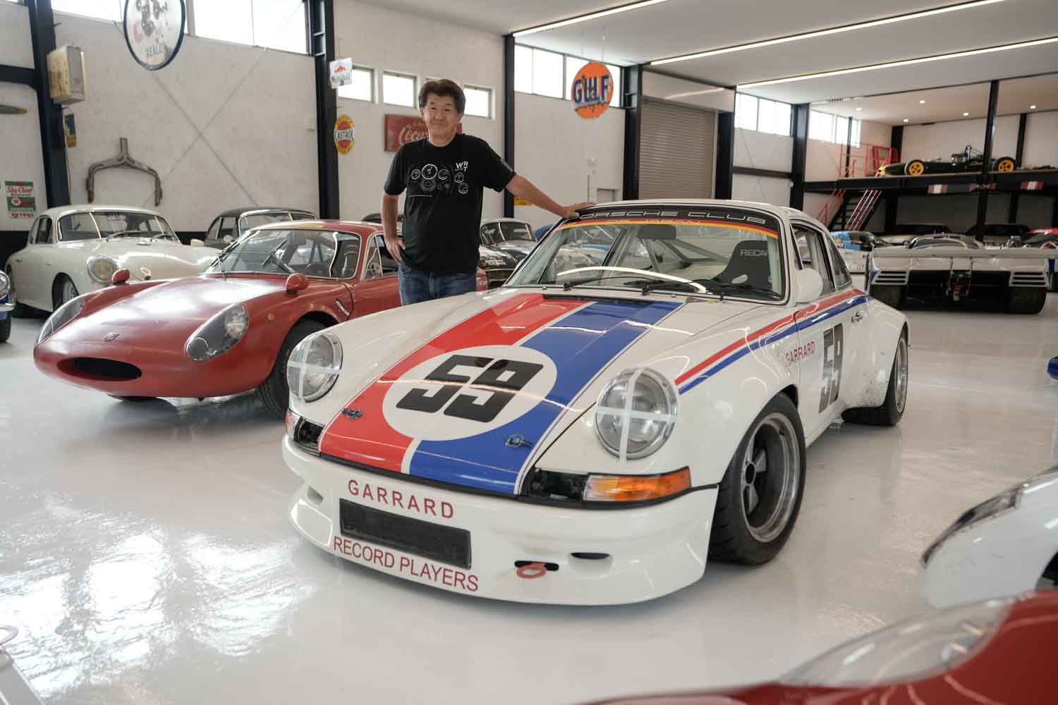 その後は同じ空冷エンジンのポルシェ「911T」でサーキットへ足を踏み入れる。長年にわたってさまざまなレースへ参戦し、愛車はアップデートを重ねた。国内唯一のJAF公認ヒストリックカーレースであるJCCA(日本クラシックカー協会)が主催するクラシックカーレースでは、最速クラスのFクラスで優勝を飾るなど、自身のドライビングスキルも磨いた。