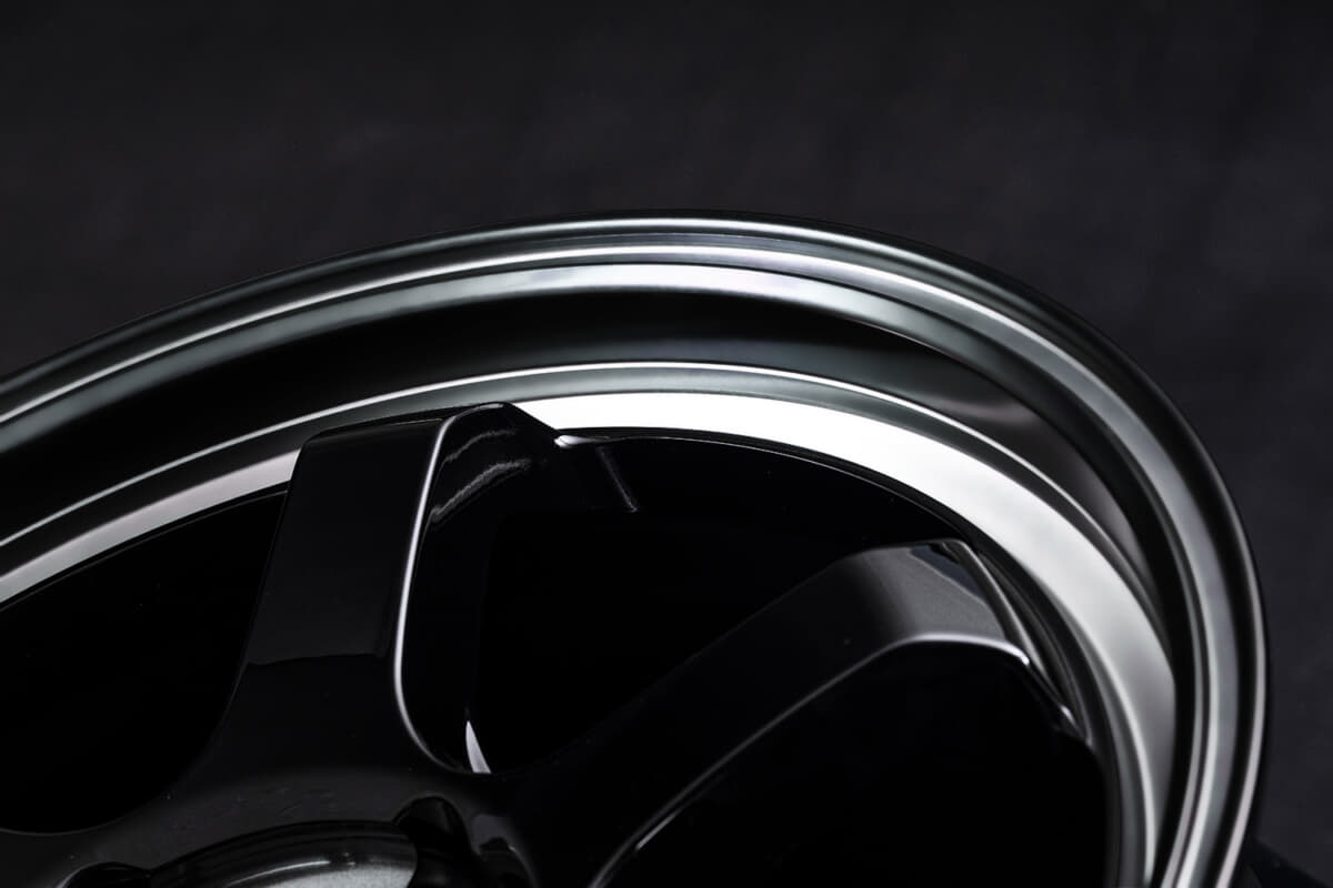 • MID RACING R06:リムはポリッシュ加工を施し、センター部を除くスポーク部分はグロスブラックで塗装。そして全体にブラッククリアを吹き、他にはない立体感を楽しむことができる