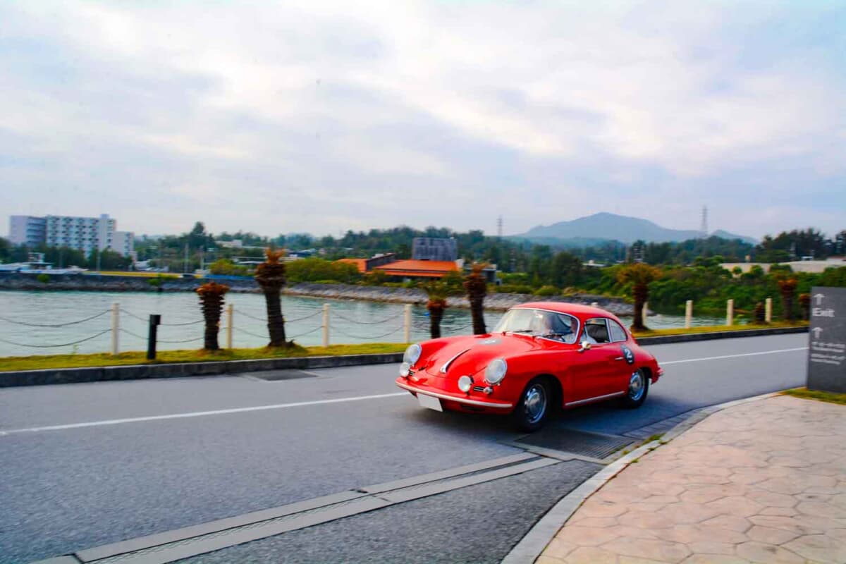• 「ハイアットリージェンシー瀬良垣アイランド沖縄」の仮スタートポイントへと向かっていく、1964年式ポルシェ 356Cの美しい姿だ