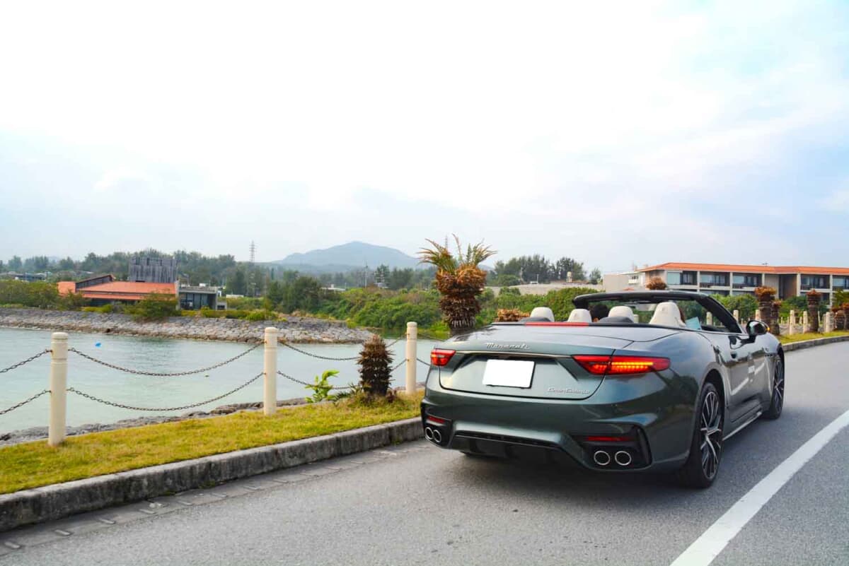 • 「ハイアットリージェンシー瀬良垣アイランド沖縄」から仮スタートをしていくのは、今回ゲスト参加となった2026年式マセラティ グランカブリオ トロフェオだ