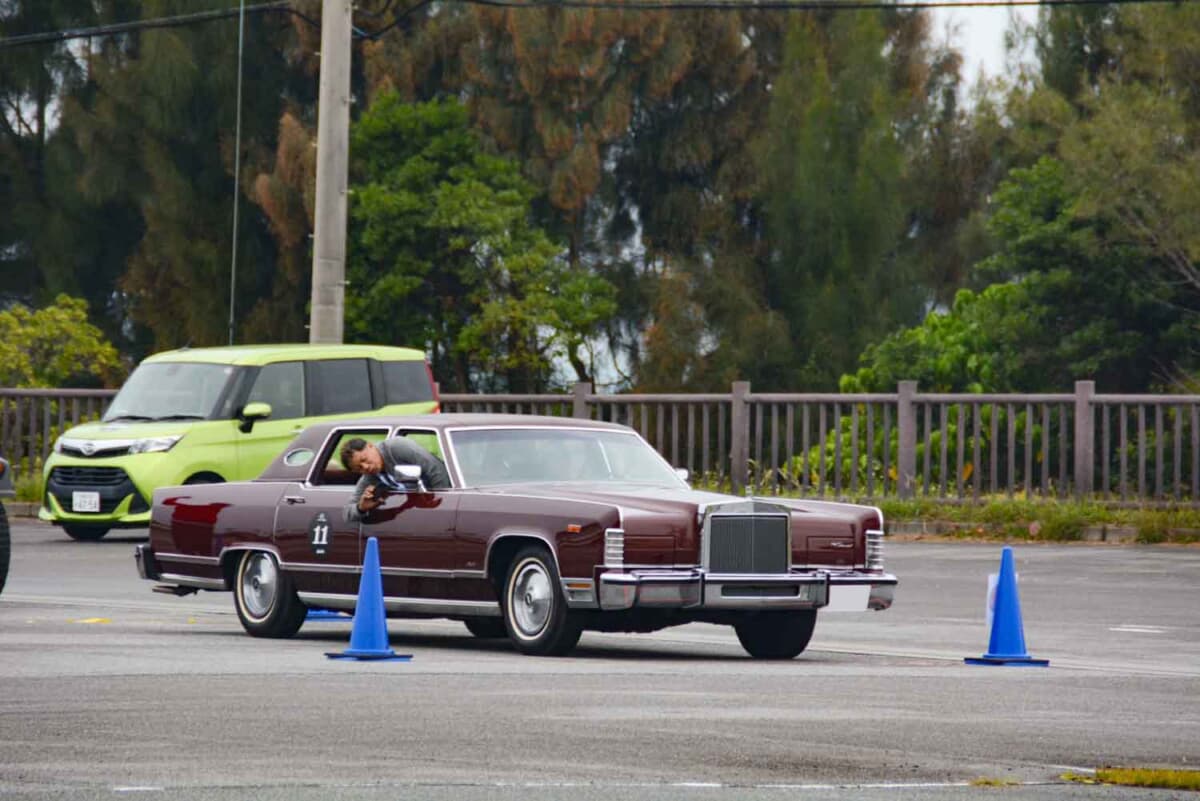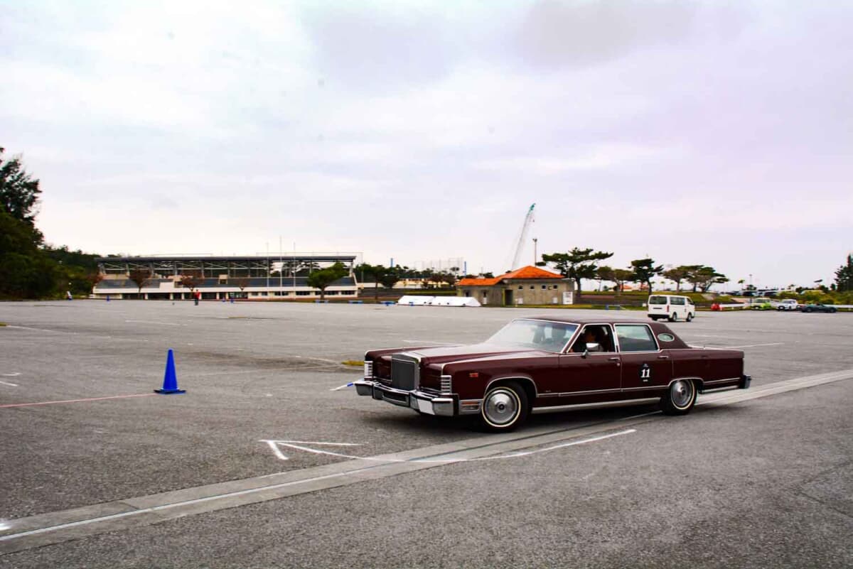 • 恩納村にある大型スポーツ施設「赤間総合運動公園」にて行われたP.C.競技で奮闘する、1979年式リンカーン タウンカーのコンビである
