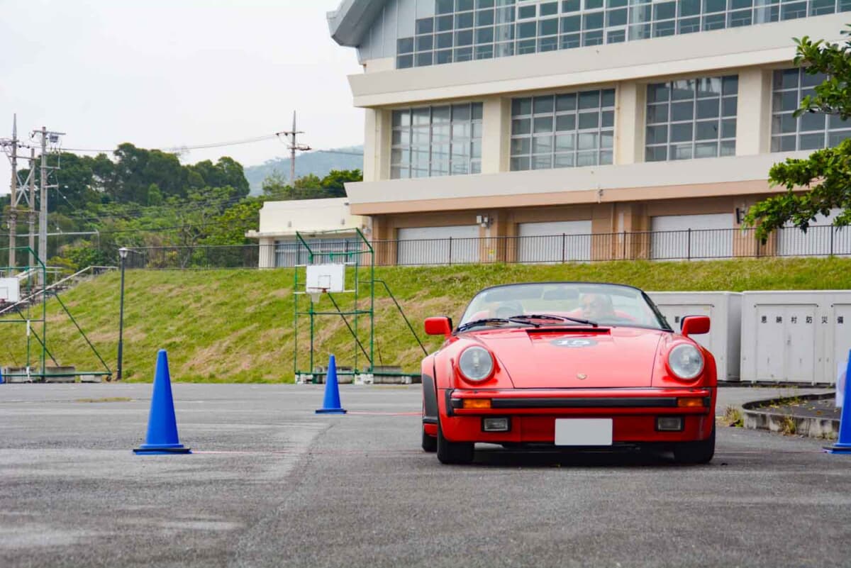 • 「赤間総合運動公園」にて行われたP.C.競技で奮闘を見せる、1989年式ポルシェ 911カレラ3.2スピードスターに乗る夫婦ペアの華麗な走りだ