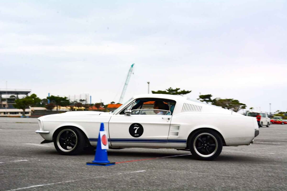 • こちらも「赤間総合運動公園」でのP.C.競技で奮闘する、1967年式フォード マスタング ファストバックのコンビ。アメリカ車らしい豪快な走りを見せている