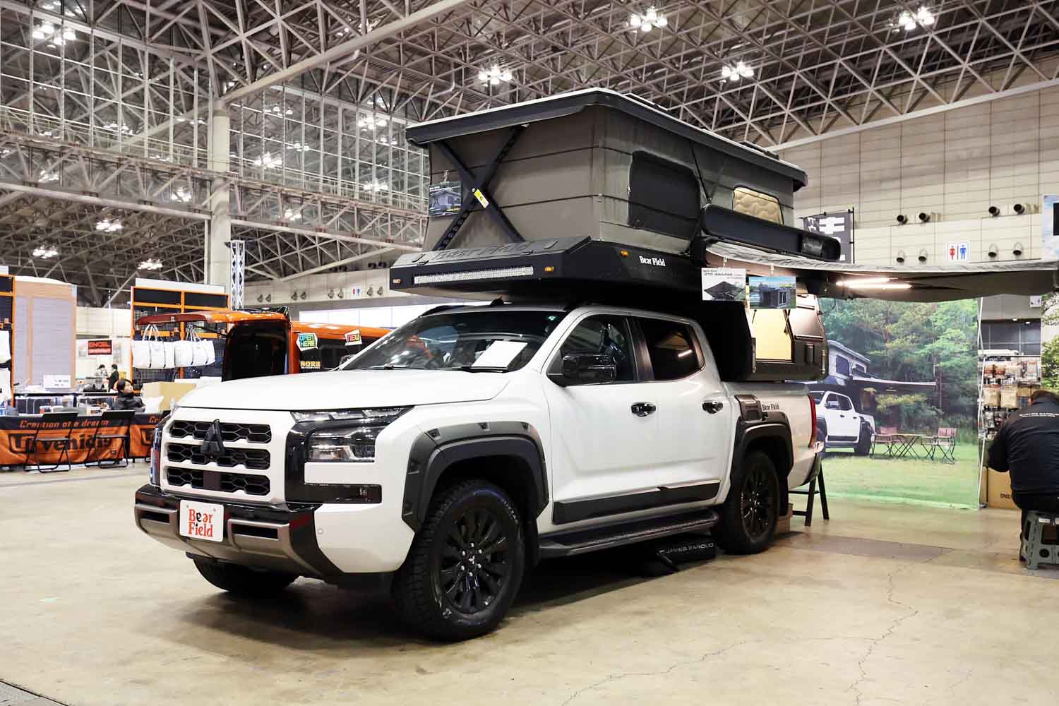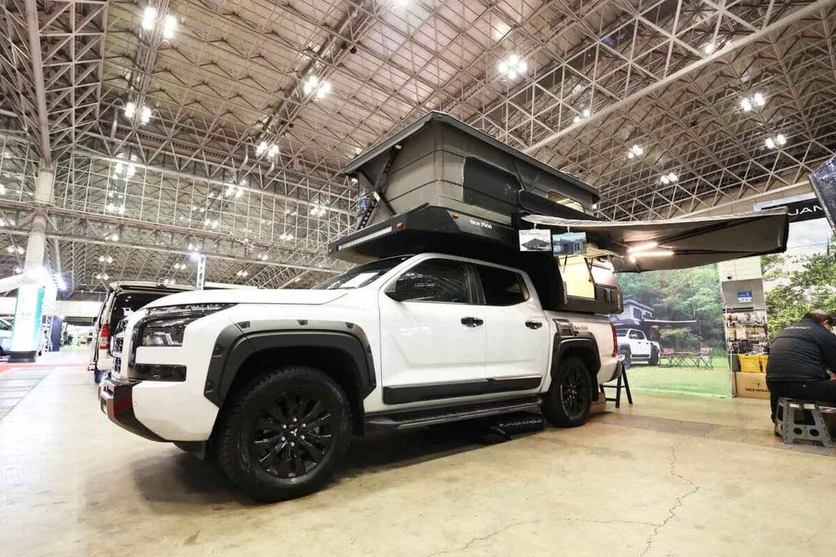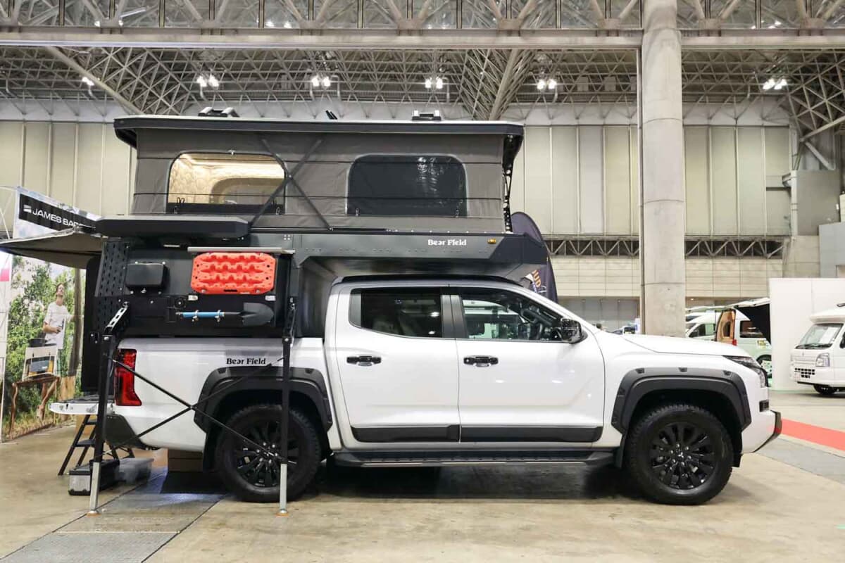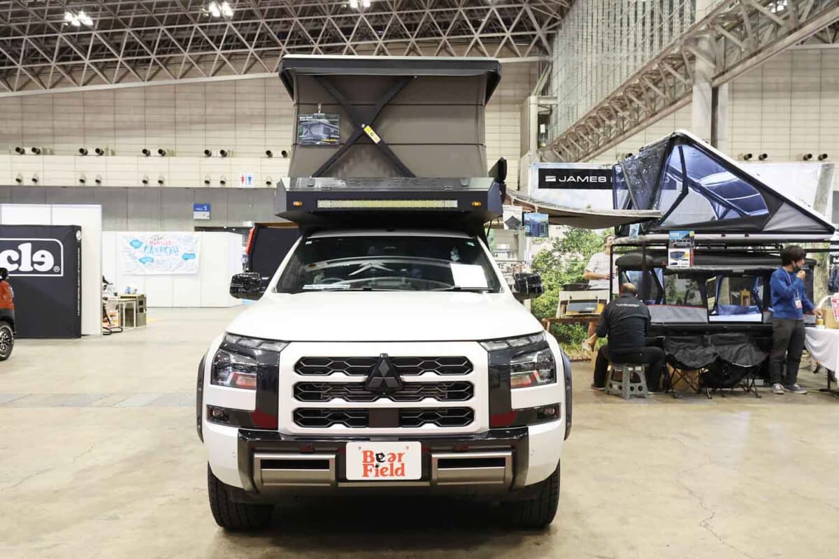コイズミの新ブランドチャンネル「Bear Field(ベアーフィールド)」から登場したアウトランドクルーザーは、デモ車の三菱「トライトン」だけでなく、大人気のトヨタ「ハイラックス」にも搭載可能な設計になっている。