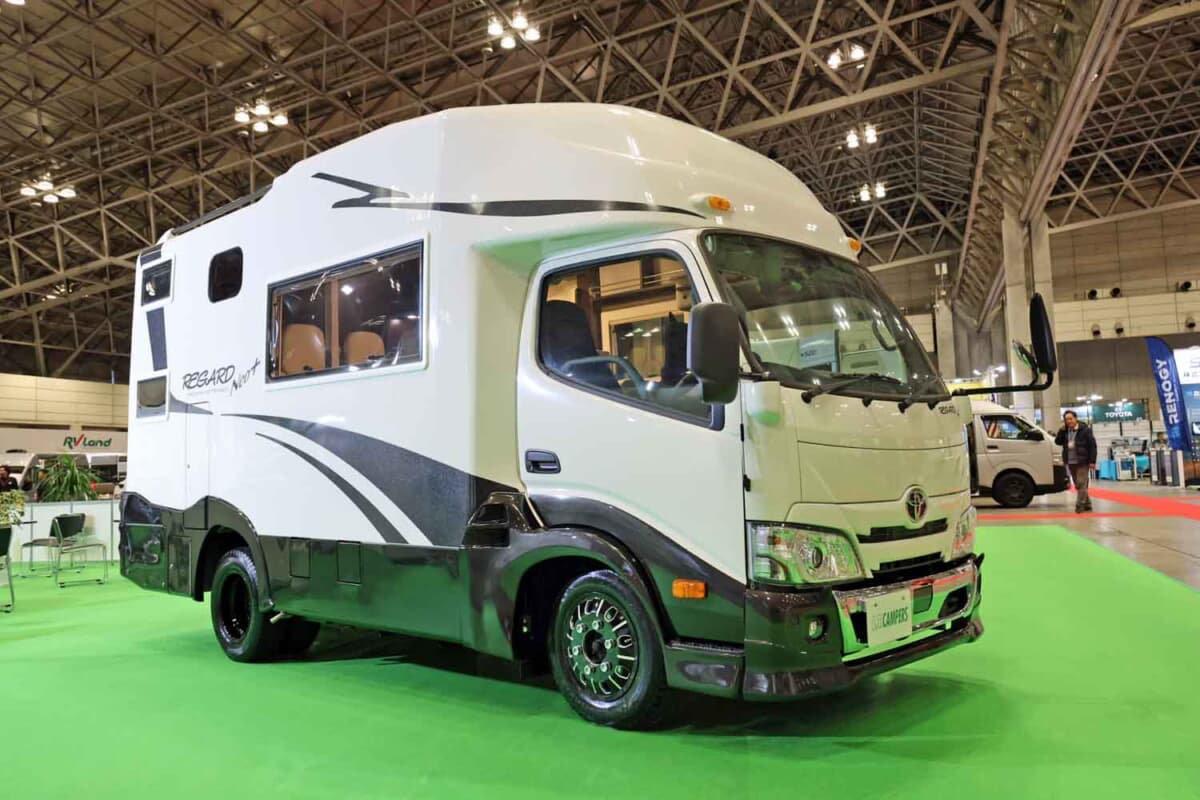 バンコンからステップアップするユーザーを意識し、ルックスをスタイリッシュに仕上げている。走りも快適でスムースにする構造は、トヨタ「カムロード」のロングシャシーをベースにしたことで実現した。
