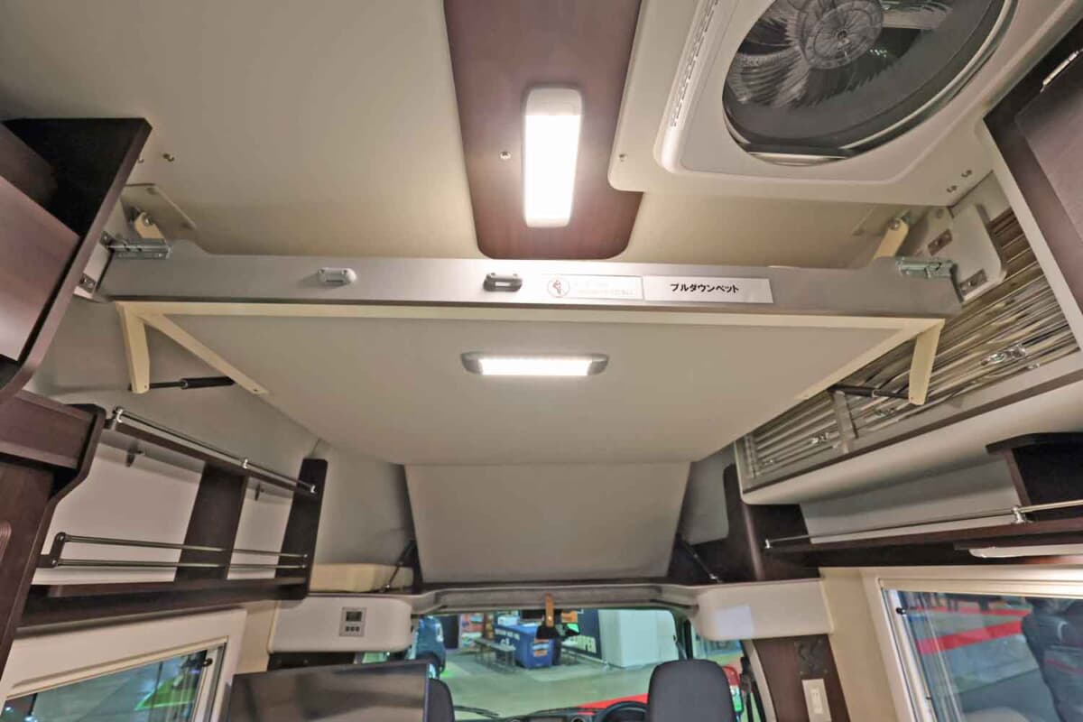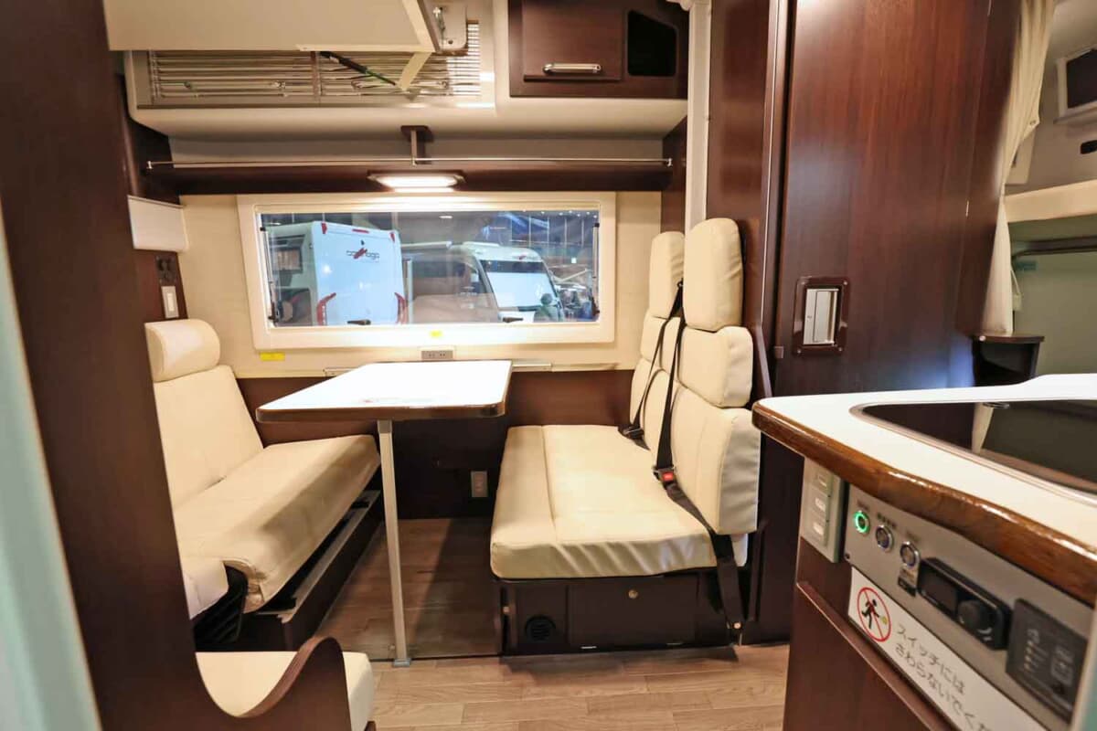 乗車定員および就寝定員については、しっかりと8名乗車・6名就寝が可能だ。ベッドは後部の常設横置きベッド、プルダウンベッド、ダイネット展開ベッドの3カ所を用意し、それぞれ2名ずつの快適な就寝スペースが作れる設計になっている。