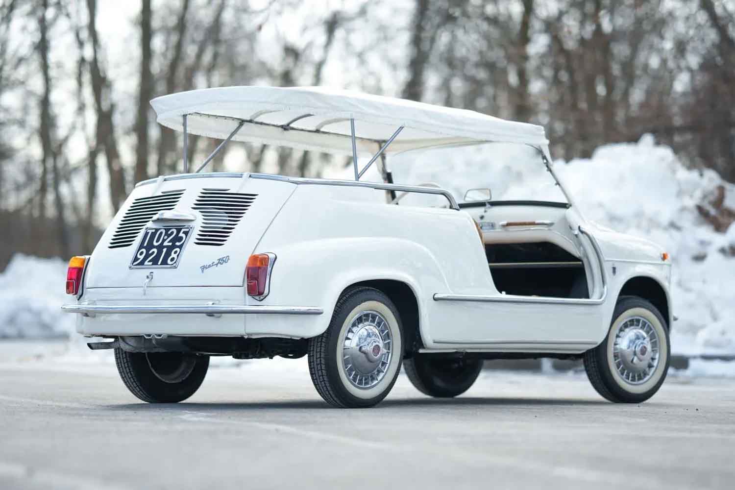 オークション出品に添付された書類には、シャシーナンバー「420901」、エンジンナンバー「460249」と記載され、このジョリーがオープンボディを施したフィアット 600であることを公式に示している。ここで特筆すべきは、新車として顧客に納車されたジョリーのなかでも唯一、アバルト製747ccエンジンを搭載した個体であることだろう。