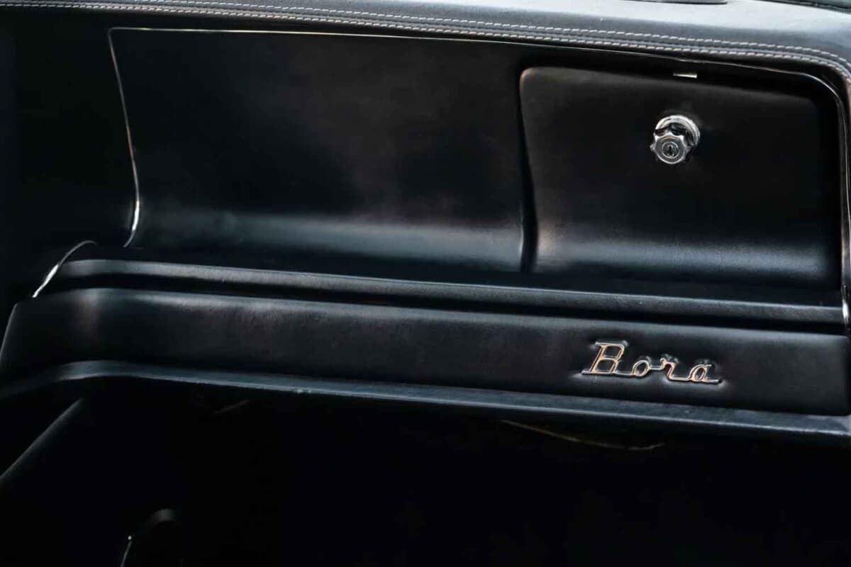 この時期のスポーツカーとしてはかなり長いものであった2600mmのホイールベースを巧みに昇華し、スタイリッシュに仕立てたボーラのモノコックボディは、独立して間もないジョルジェット・ジウジアーロ率いる「イタルデザイン」社によるもの。リトラクタブル式の丸形2灯ヘッドライトに加え、あえて塗装せずに金属の地肌をそのまま活かしたステンレス製のルーフが外観上の大きな特徴だ。この前衛的でありながらもエレガントなディテールは、数あるスーパーカーのなかでもボーラ特有の美しさを際立たせている。