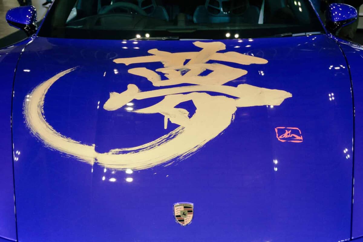 昨年のオートモビルカウンシル2025(幕張メッセ)においては、ポルシェの電動化をテーマとした完成作品『雅-electric-』が、書家でありアーティストの岡西佑奈氏の書道ライブパフォーマンスによって発表された。今回の東京マラソンでも審判長車を務めた同車両のフロントフードには、岡西氏の新作として「夢-YUME」の文字が描き込まれている。さらにその傍らには「タイカンターボGT」と縦書きされた掛け軸も置かれており、ポルシェの先進技術と日本の伝統文化が融合した展示となっていた。