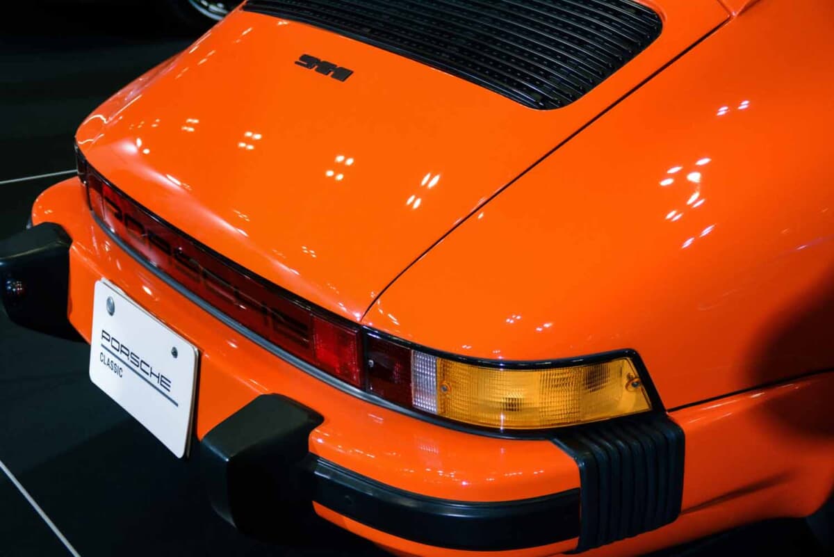 そして過去(クラシック)を体現するモデルが、中央に配置された1976年式のGモデル(ビッグバンパー世代)である。この鮮やかなオレンジ色の911クーペが今年のセンターを飾ったのには、重要な理由があった。